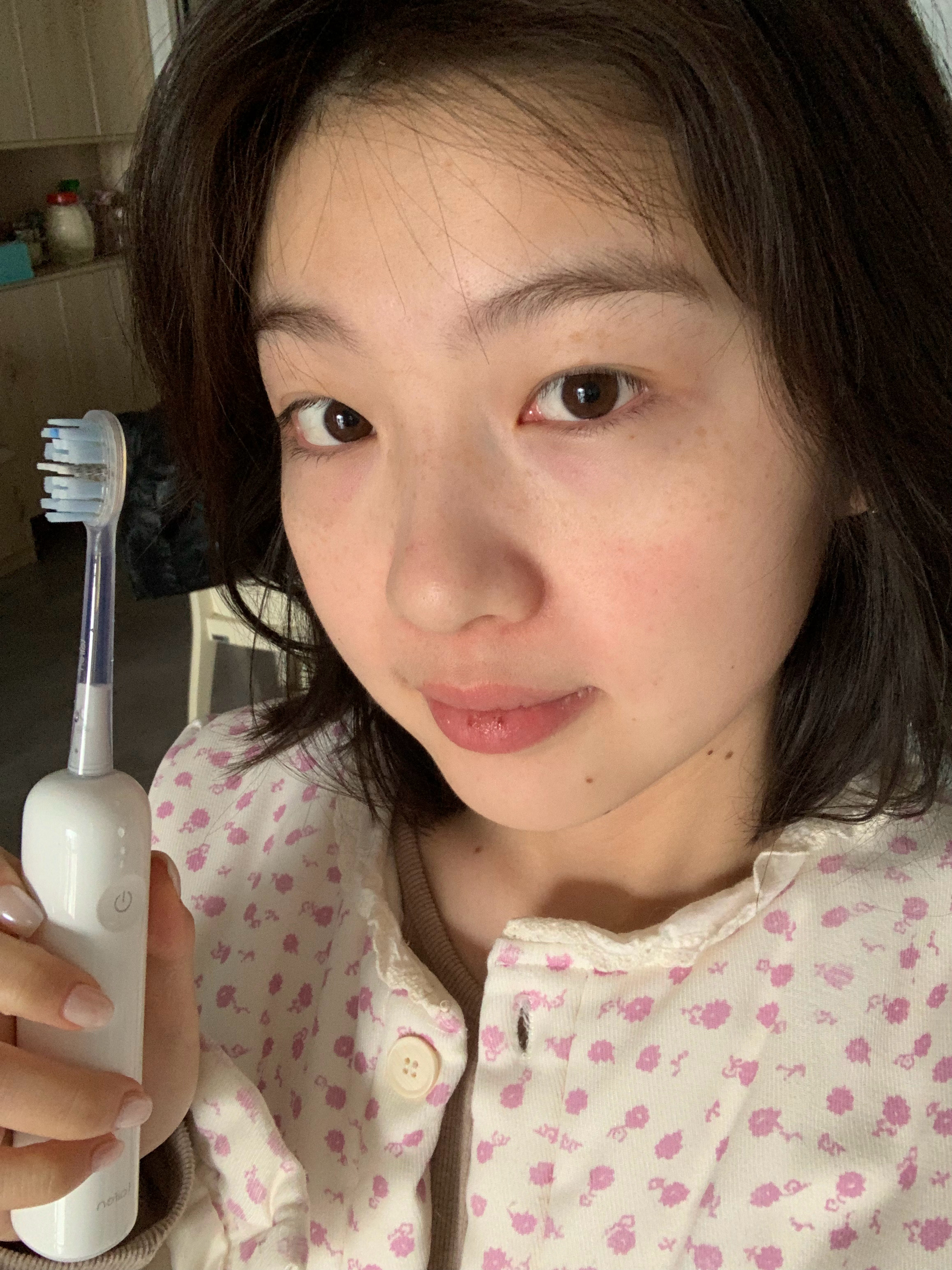 最近换了把新牙刷 以前那把又大又重 🦷这把拿在手里很轻 刷起来很省力 我牙窝沟比较深 很容易藏东西 刷不干净的话慢慢就长小黑线然后变成蛀牙(我蛀牙真的很多)这个刷头能顺着牙缝和牙窝沟扫进去 🧹自动模拟巴氏刷牙法 所有角落都能扫到!软毛刷头真的很舒服😌刷完牙齿干净很多 用手一搓 真的会嘎吱嘎吱响😁😁😁有被爽到哈哈哈哈哈哈哈哈哈