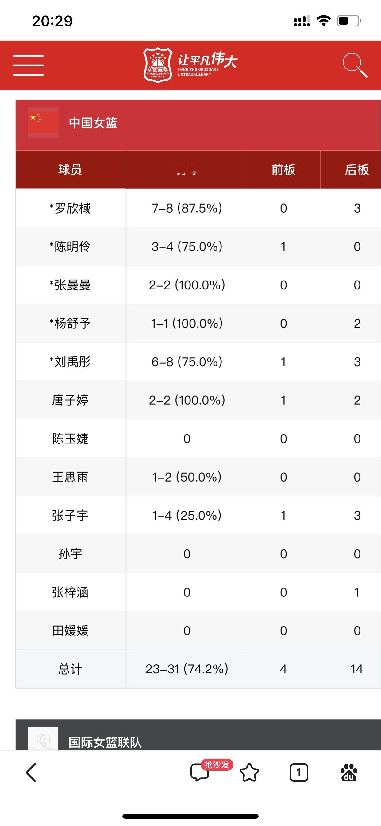 中国女篮今晚罚球次数比对方多近4倍! 可能说中国女篮内线两大中锋在此,所以难免以篮下为主,那么容易引发犯规,从而对手被裁判吹罚,所以获得很多罚球 但是这个东西到底有没有问题,那只有裁判自己清楚 只是我通过这个数据的对比,显露出如此大的差距,难免让人看着有些无语,看等下后续还会不会这样子? 此外,便是今晚王思雨、张梓涵如我今天早上发文所说,得到上场机会
