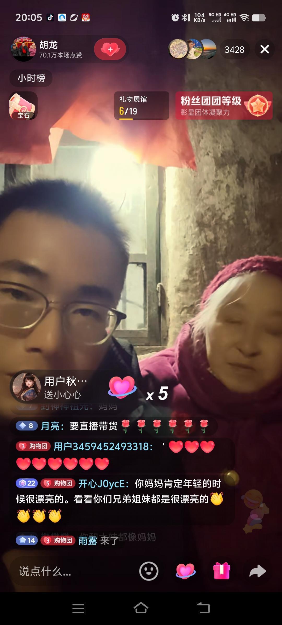 胡龙在老家开启直播,爆料自己的家属于城中村,直播间人气比前几天下降很多,妹妹一直