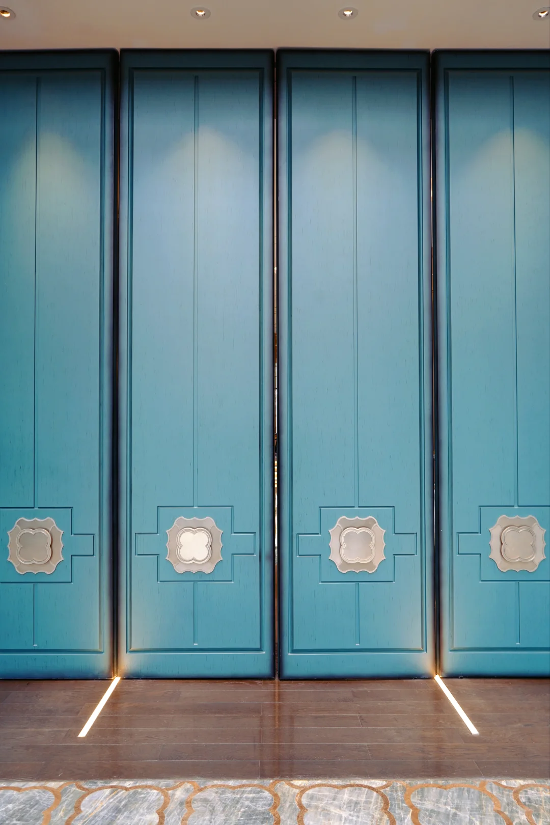 大厅里陈列着寓意吉祥的官轿与喜轿
