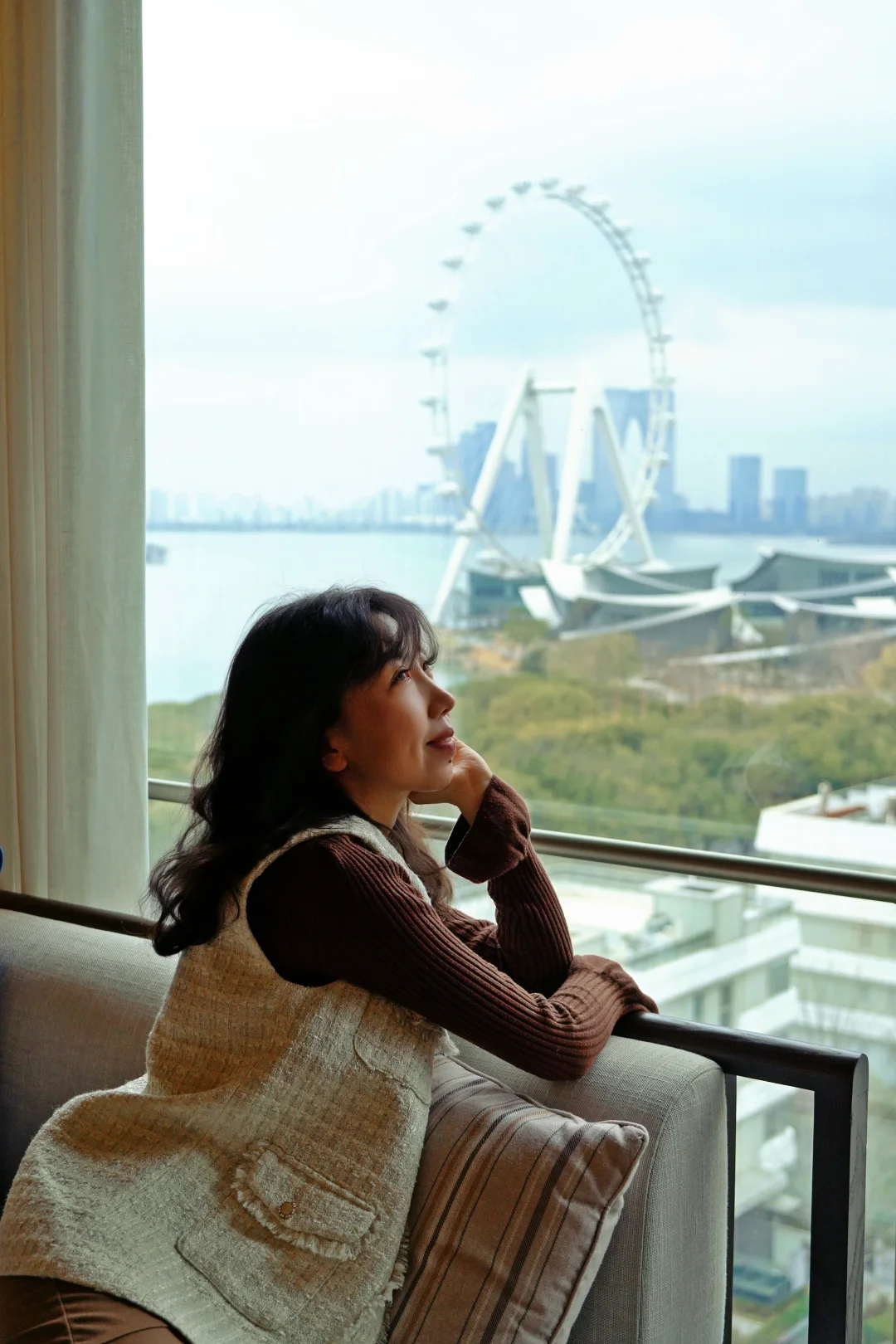 夜晚的苏州之眼摩天轮亮起暖橙色的灯光