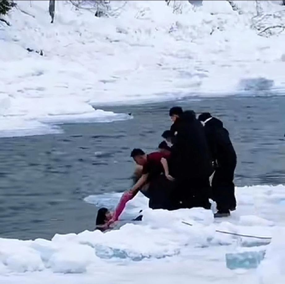 2月10日,母女俩到新疆喀纳斯景区游玩,来到了花楸谷。此时的气温已降到零下20℃,一条奔腾不息的河流,仍然挟带冰块滚滚向前,把俩人吸引住了。 河流上面覆盖冰雪,极易滑入水里。河边竖立警示牌与警戒线,禁止游客进入里面。 母女俩不顾危险,越过警戒线去拍照。女儿站在河边的雪地上,脚一滑,掉入水里,瞬间被湍流冲走。妈妈急了,大喊一声:“救救孩子”,跳入水里去救女儿。没一会儿就被冻僵游不动了,靠在河边的冰块上。 所幸景区里有很多人,母女俩落水被发现。女孩被一大冰块挡住了,众人将她救上岸。接着又把妈妈救了上来。由于发现得早,救援及时,俩人均无大碍。 旅游,要守规矩,不要拿生命开玩笑。 母女越过警戒线拍照落水 旅游