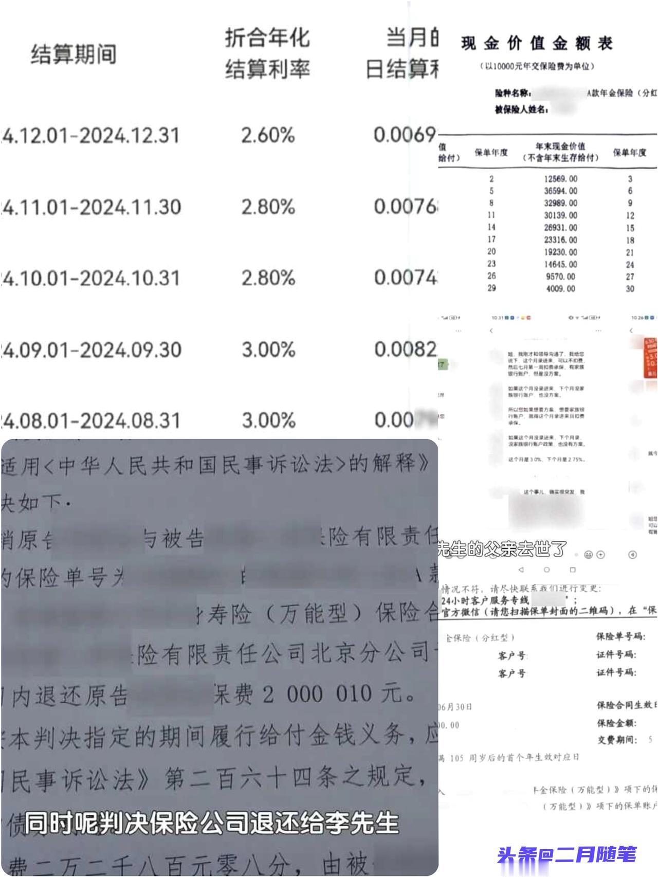 离谱! 男子投资千万买保险, 竟发现105岁才能取!要求退保被拒绝, 法院判了! 这年头买保险可真刺激—— 北京的李先生被熟人业务员忽悠着签了200万保单,当时拍着胸脯说“随用随取”, 结果回家一看合同—— 好家伙, 本金要等到105岁才能动!敢情这保险是给重孙准备的吧? 李先生后来家里有事又生病, 等翻 看合同时直接傻眼。 业务员明明知道他打算五年内用钱, 却压根没提这个“百年条款”。 法院去年判了, 认定这是欺诈, 合同撤销, 保险公司连本带利吐回两百万。 法官说得很明白: 信任不是免罪牌, 更不该变成镰刀。 现在这类套路可不少, 专挑中老年人下手, 利用“错过就没有了, 过了这个村就没有这个店”的话术制造焦虑, 而关键条款则是轻描淡写带过。 产品名字也玩文字游戏,听着像是养老, 实则锁死几十年。 监管通报里, 老年金融诈骗案件每年蹭蹭涨。 各地类似案例频出, 可跨省调查还没动 买保险? 看来得带个放大镜, 再备点降压药才行。 保险套路 防骗提醒 老年人理财现实太扎心保险套路大曝光 保险骗局