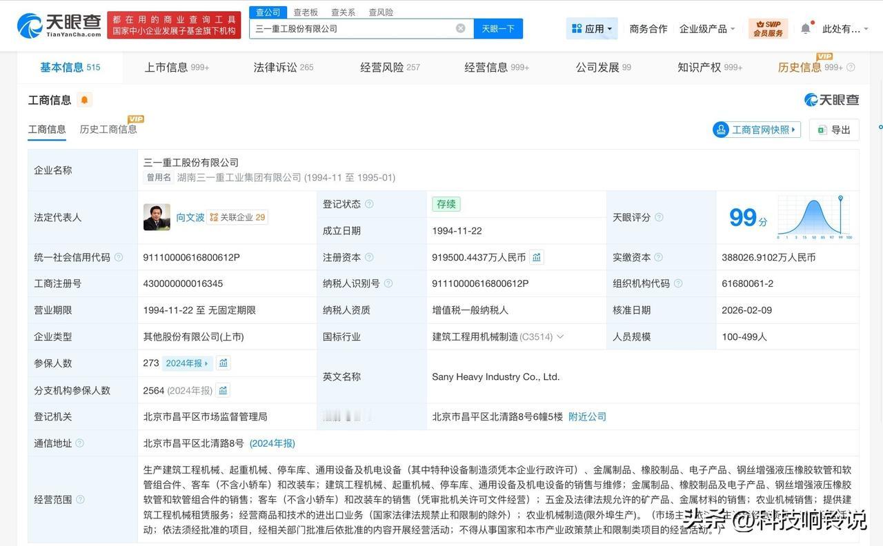 【三一重工增资至91.95亿 增幅约8.5%】 天眼查App显示,近日,三一重工(600031)发生工商变更,注册资本由约84.74亿人民币增至约91.95亿人民币,增幅约8.5%。 三一重工股份有限公司成立于1994年11月,法定代表人为向文波,经营范围含生产建筑工程机械、起重机械、停车库、通用设备及机电设备等的销售与维修,提供建筑工程机械租赁服务,经营商品和技术的进出口业务等。股东信息显示,该公司由三一集团有限公司、香港中央结算有限公司、梁稳根等共同持股。 天眼查信息:
