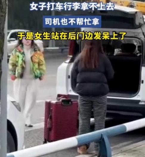 真是人才!一女子打车行李拿不上去,女司机打开后备箱就上车了,没帮忙抬行李。于是,