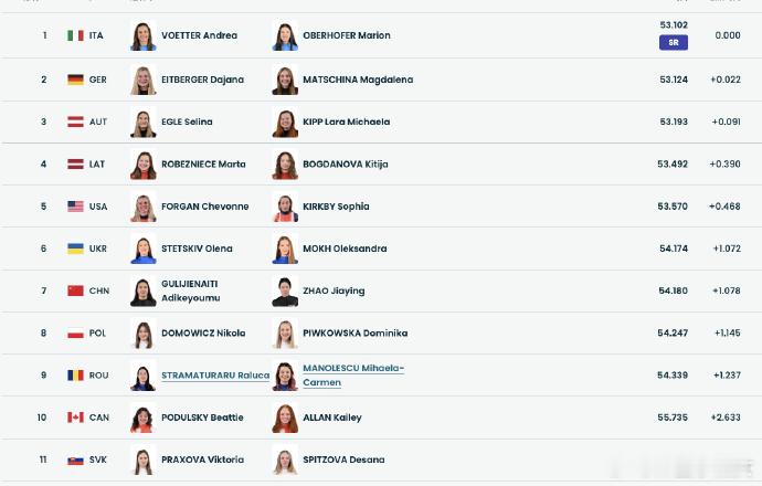 女子双人雪橇迎来奥运首秀创造历史!女子双人雪橇首次亮相冬奥赛场,中国组合古丽洁乃提·阿迪克尤木/赵佳颖首轮第7名,圆满完成奥运首秀!两位姑娘好样的