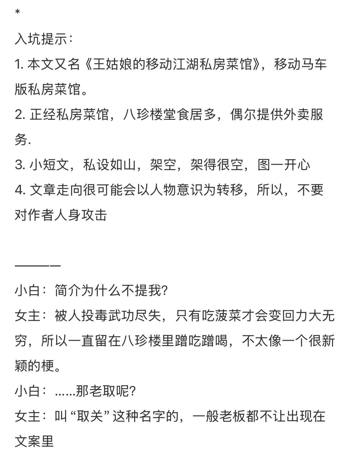搞笑治愈经营美食文!搞笑治愈经营美食文!※本文又名《王姑娘的移动江湖...