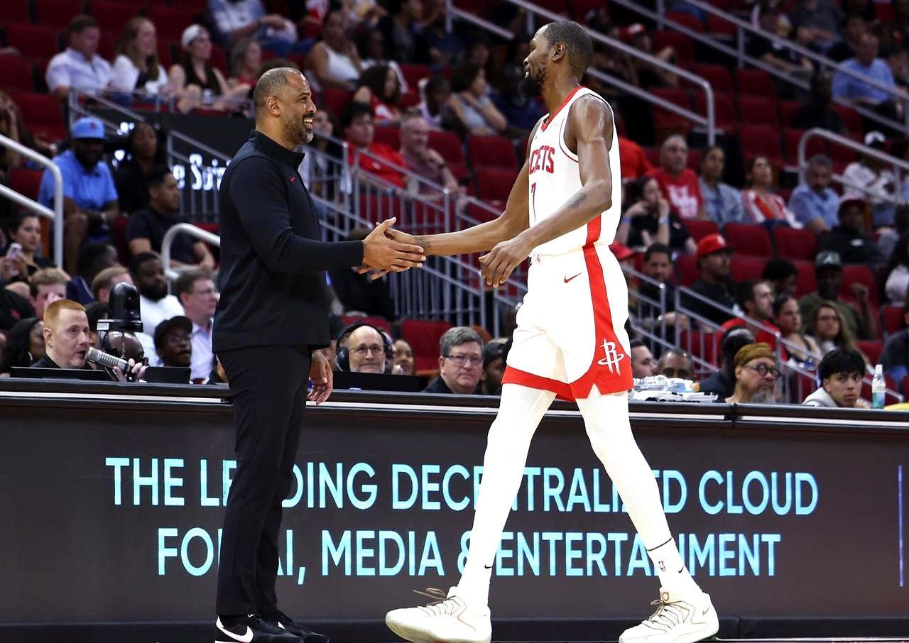 37岁,他主动放弃了3000万美元。就为了能留在休斯顿火箭队。 去年夏天那笔七队大交易尘埃落定,KD披上火箭球衣。所有人都觉得这是份养老合同。结果呢?本赛季他场均还是25.9分,命中率过五成。打快船那场,他轻描淡写拿下26分,生涯第1000场得分20+。你看到的不是老将的余晖,是顶级射手的日常训练成果。 奥拉朱旺有一次在训练馆看他投篮,说了句大实话:就凭这手基本功,他想打多久都行。杜兰特自己更狠,他说一天一天来,但目标是打到40岁,甚至45岁。那份两年9000万的续约,在他眼里不是终点站,而是加油站。 这不是关于年龄的数字游戏,这是关于热爱的长期主义。不为刷纪录,不为顶薪,只为每一次干净的出手,和下一次关键的防守。传奇的尾声,往往比开场更震撼人心。