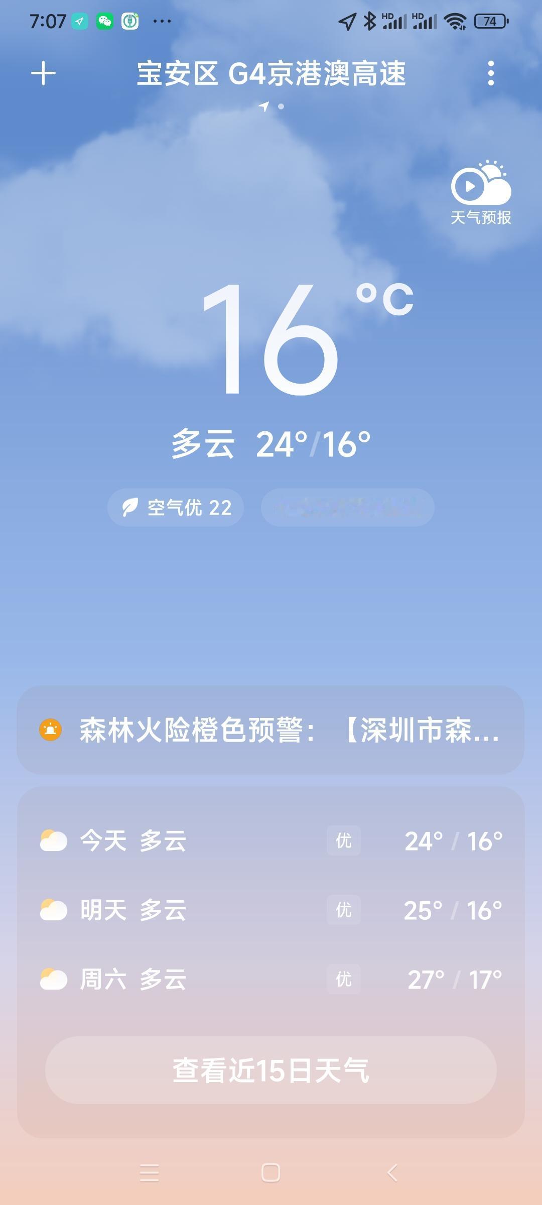 我的今日状态:😁轻松愉快 我这里的天气:🌤️多云深圳今日多云,气温16度到2