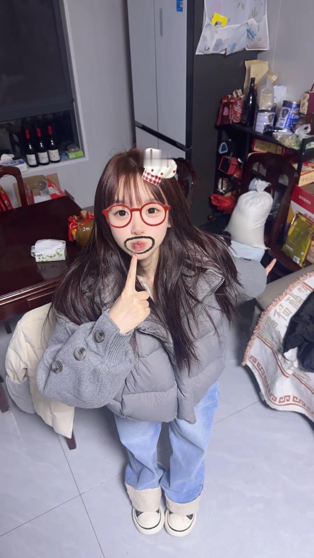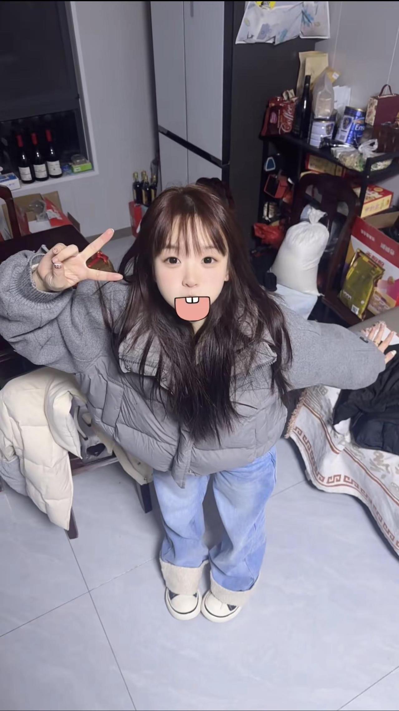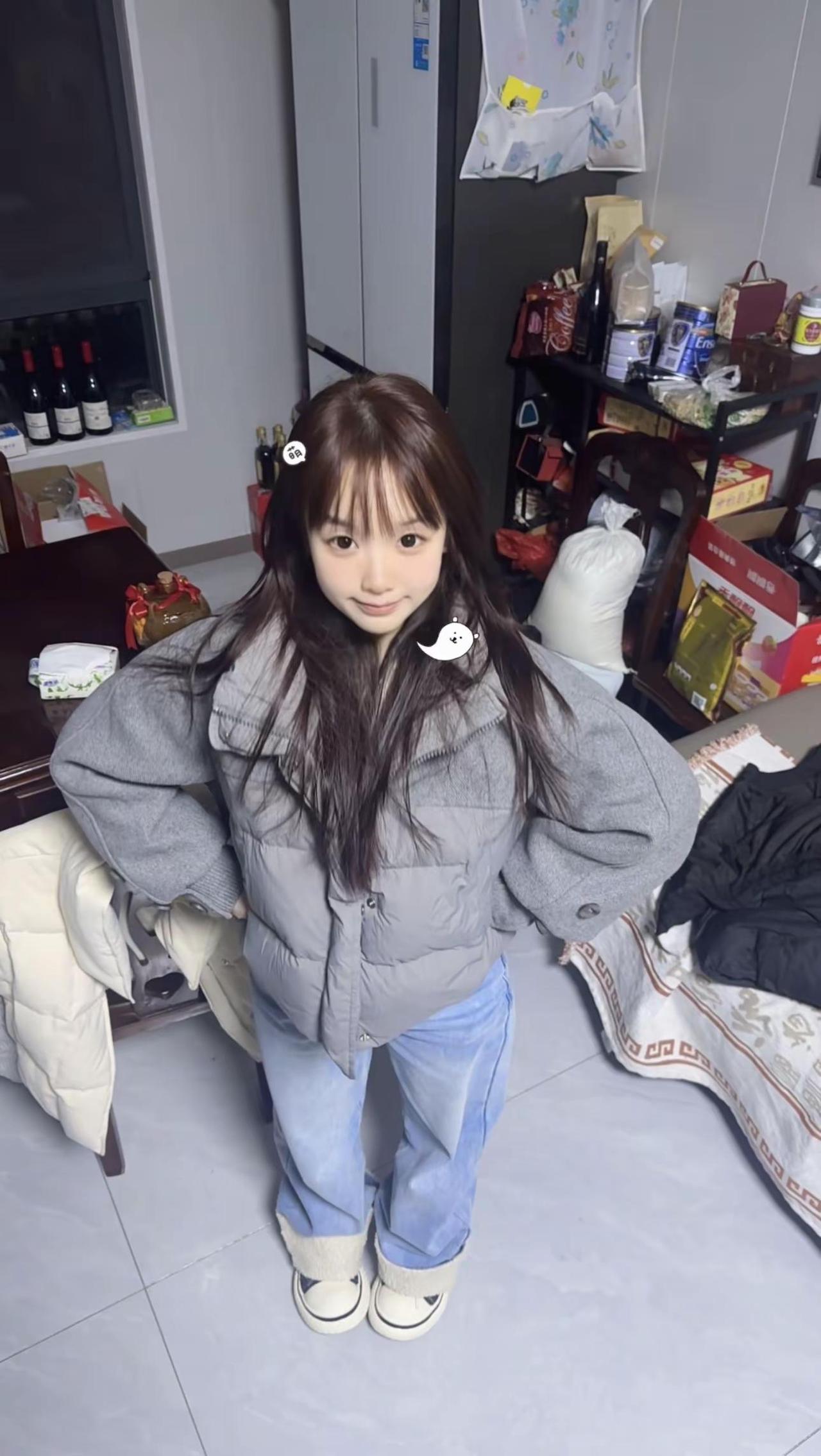 贵州女孩90后 对镜拍姿势 牛仔裤系列微胖女生
