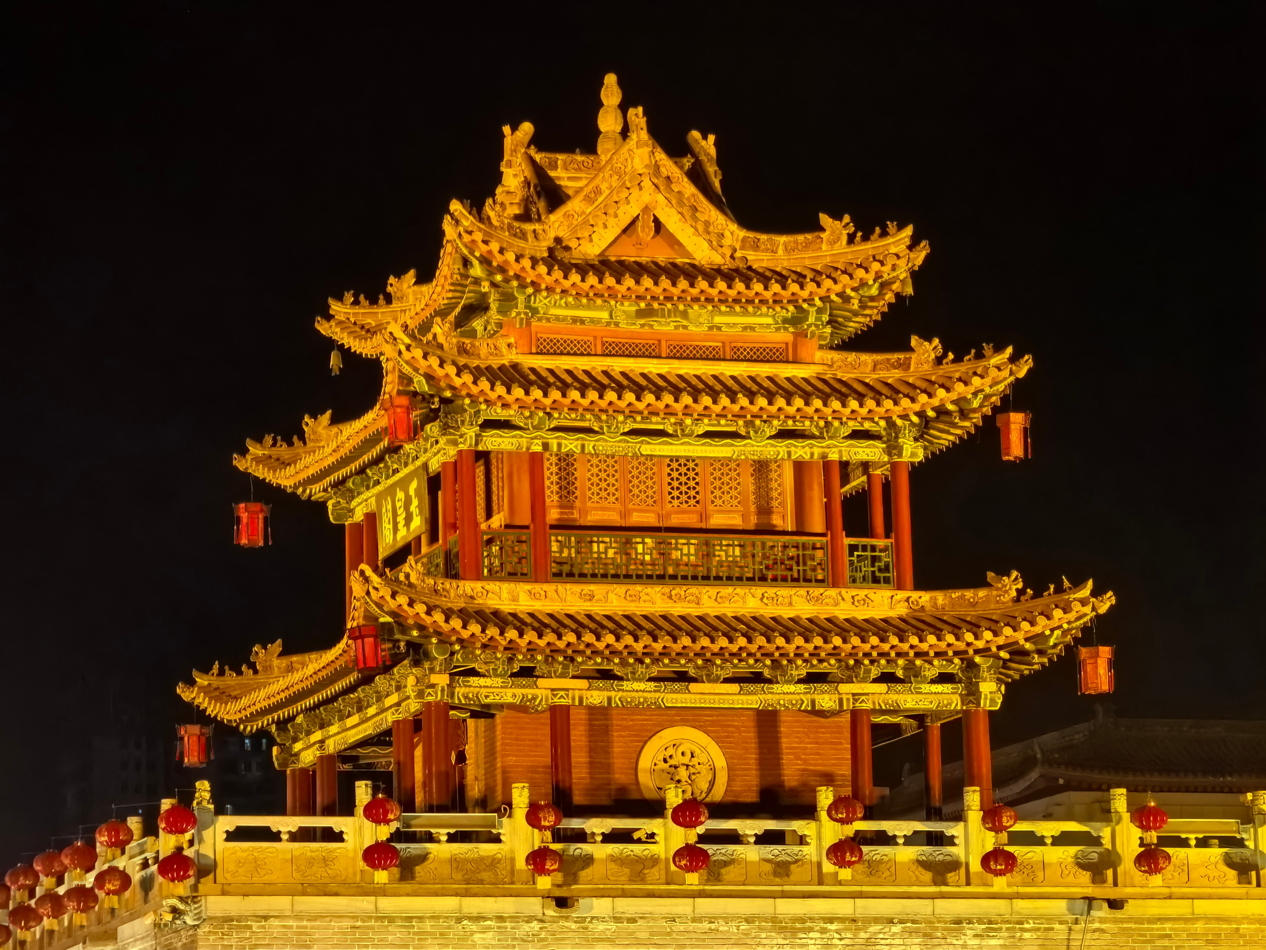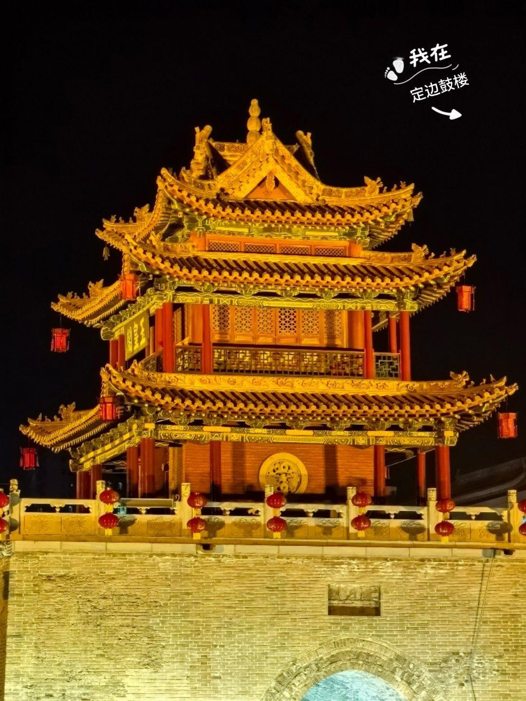 定边鼓楼的灯亮了。