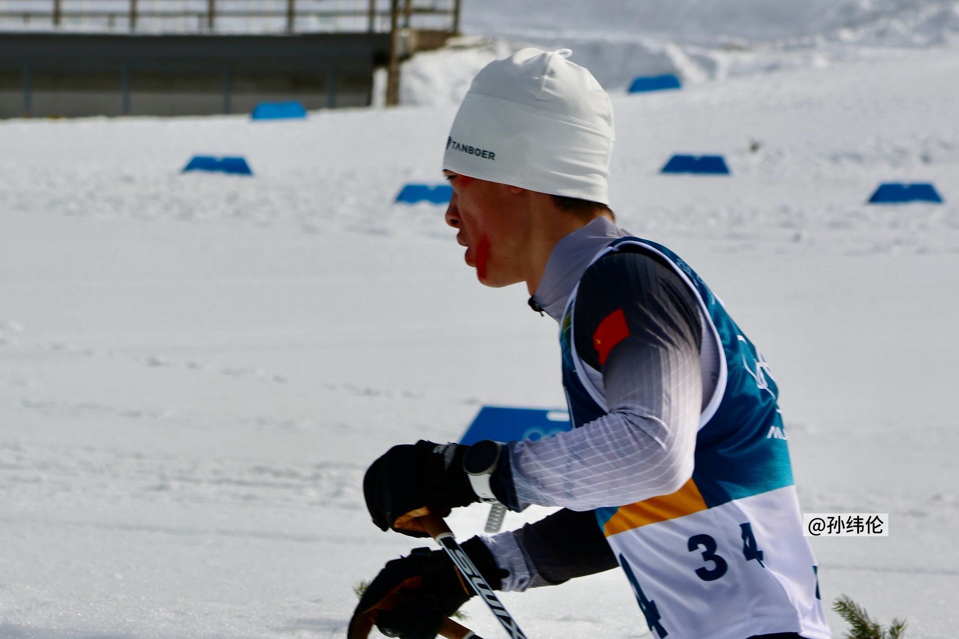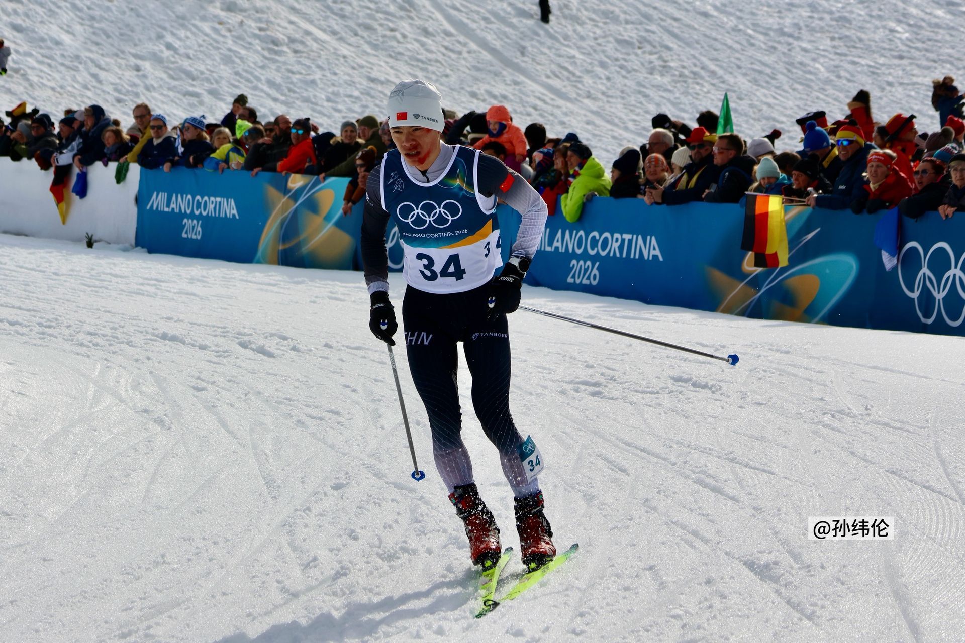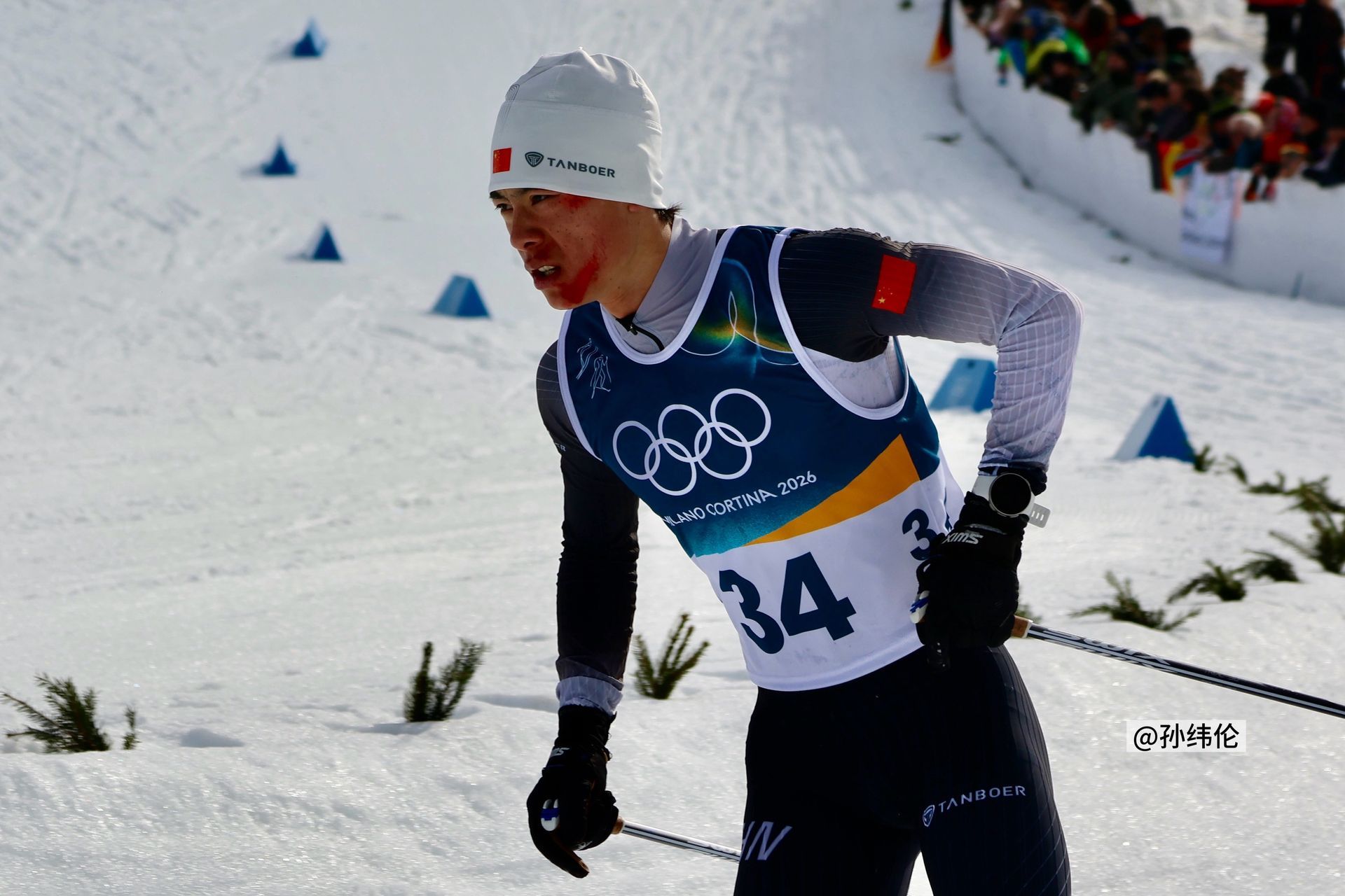 中国队员面带鲜血过终点线沁园春·赞赵子贺冬奥带伤完赛冰雪 Milan,壮志凌云,意气纵横。念跳台轻起,身姿稳健;越野驰骤,步履铿锵。意外忽逢,血流颜面,不改初心向远方。拼到底,任风霜刺骨,斗志昂扬。从来志士刚强,效古贤、坚韧作脊梁。叹中华儿女,敢担重任;冬奥赛场,勇创荣光。接力前行,刷新历史,赤子丹心照八荒。君堪赞,以伤痕为耀,永铸篇章。