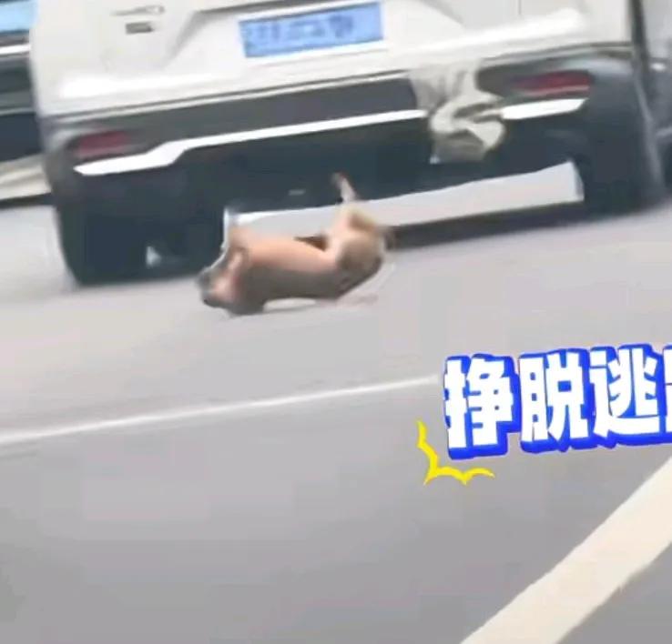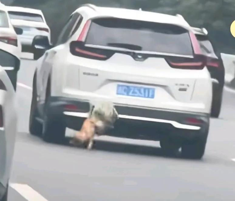 主人带狗子回家过年,狗子晕车,无奈将其系在车尾, 结果狗子挣脱逃跑了, 这拴在车尾,你也拴好呀! 半只头露在外边, 它一个颠簸就出来了半个身子, 头在地上滑着, 它自己不寻觅逃生之法, 肯定会被你拉了死。 网友说,这么大个车, 没有狗子的容身之处。 狗子成功的把自己变成了流浪狗, 当然也有很大的可能会变成狗饼。 绝对不可能是晕车, 哪有这样用袋子装狗的。