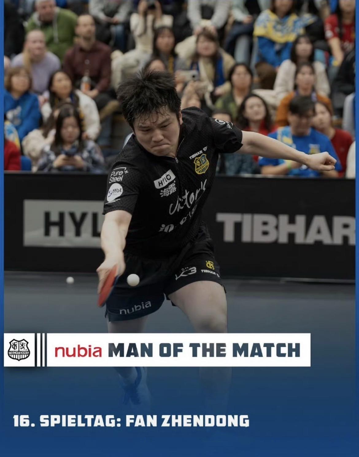 TTBL:樊振东当选德甲联赛第十六轮最佳球员!