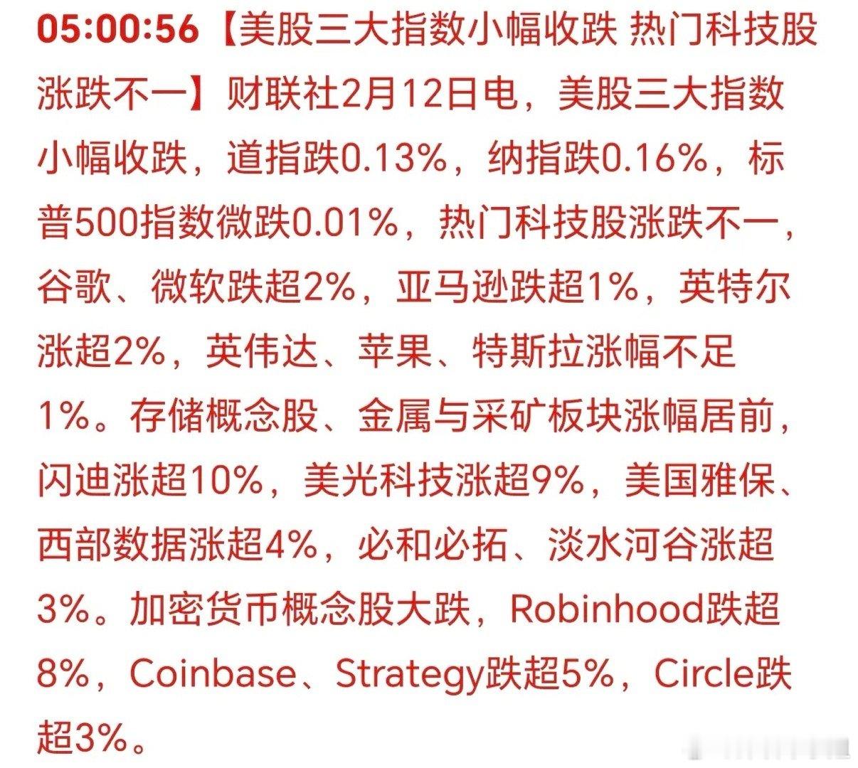 美国三大股指集体小跌!