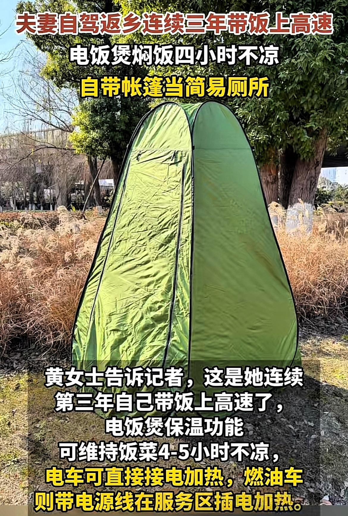 浙江这对夫妻也太会了! 别人春运自驾,堵在高速又饿又急,要么啃冷面包,要么排长队吃快餐,又贵又不好吃。 你看人家,直接带一锅热乎焖饭上路,保温好几个小时,想啥时候吃就啥时候吃,一口下去全是家里的味道,这才叫舒服! 更绝的是,连厕所问题都提前想好,小小一个折叠帐篷,堵车、排队全不怕,尴尬直接解决。 人家这哪是回家,这是把生活过明白了,不将就、不委屈自己,小小的细节里,全是踏实和暖心。 看完真的破防了,幸福哪需要多隆重,一口热饭、一路安心就够了。 你们自驾回家,都带过啥硬核神器? 浙江 夫妻 回家过年