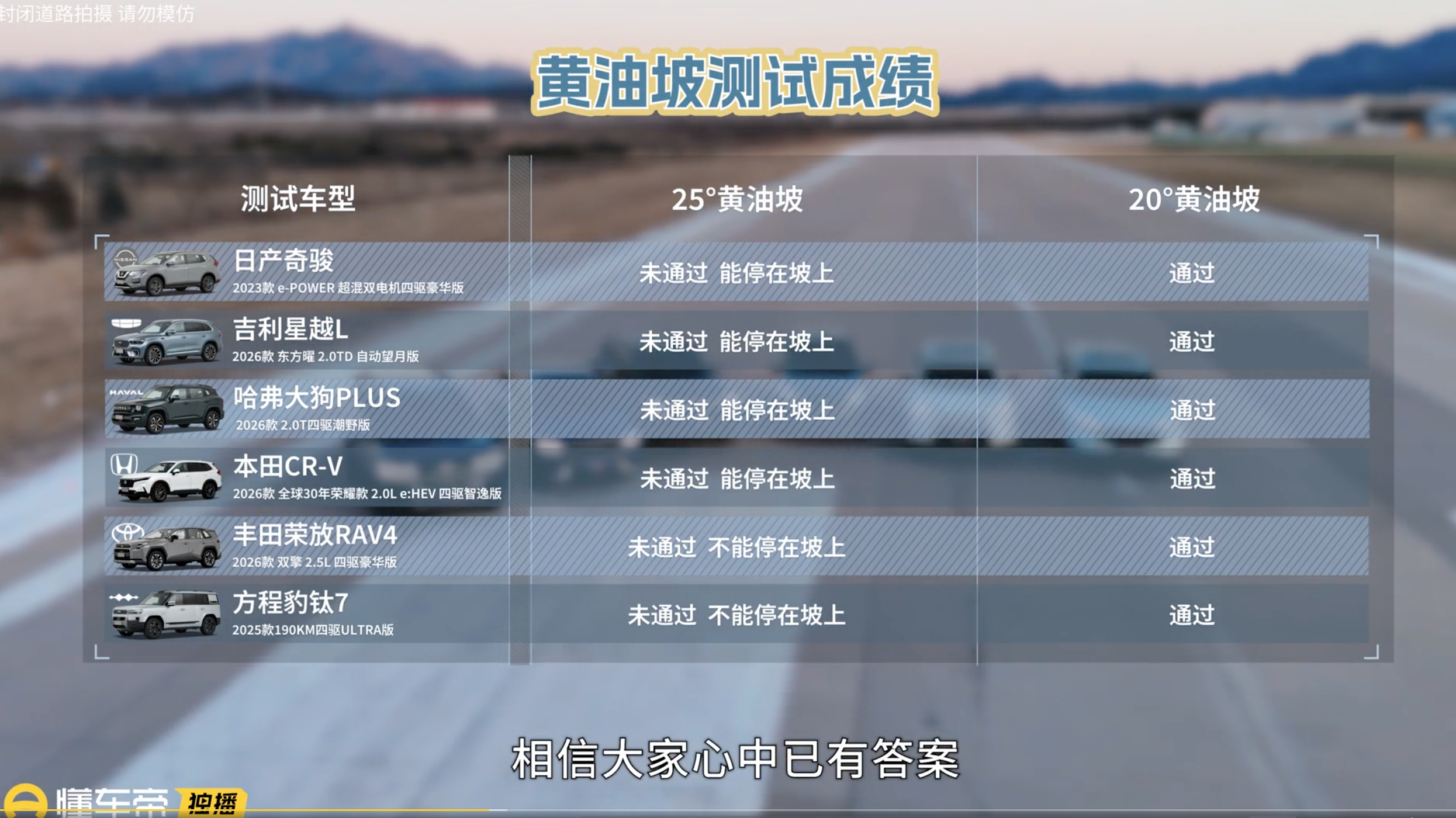 想围观完整版实战视频?搜“家用SUV四驱对比” 懂车帝独家播放哦!