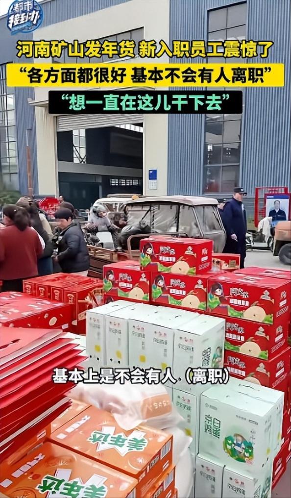河南矿山发年货了,一位新入职员工面对镜头,激动说道:“能领到这么多东西,特别高兴,我们福利待遇也好,各方面都好,基本上不会有人离职,反正我是不想走了!” 到底是什么样的企业,能让一位刚入职不久的员工,面对镜头时满脸激动,说出那句发自内心的“不想走”。 据悉,给员工发放春节年货,早已是河南矿山一年一度的“保留节目”,不搞虚头巴脑的慰问仪式,不发华而不实的精美礼盒,每一份福利都是实打实的生活物资,能直接送到员工心坎里。 今年,企业依旧延续了这份实在,给每一位员工都准备了整整10样年货,既有鱼、肉等过年必备的食材,也有五常大米、双汇火腿、金龙鱼食用油这样的优质品牌好物,还有蒙牛牛奶、好酒、饮料,以及品质上乘的土鸡蛋。 值得一提的是,今年的土鸡蛋还有一段暖心小故事,企业特意以1元1枚的价格,从当地一对养鸡夫妻手中买下了36万枚鸡蛋,总价36万元,而当时普通鸡蛋的收购价还不足0.6元1枚,近70%的溢价,既让员工吃到了优质鸡蛋,也帮养殖户解决了销路难题。 除了鸡蛋,年货里还有卫生纸、洗衣液、挂面等日用品,每一样都经过精挑细选,分量足、品质高,堆叠起来的高度,甚至超过了一个成年人的身高。 不少员工一人根本搬不完,私家车更是塞得满满当当,老板特意安排,将公司一百多辆货车临时改装成“年货专列”,专门帮员工把这些“甜蜜的负担”送回家。 现场有一户人家,一家六口都在河南矿山上班,光是白酒,一户就要领十箱,私家车根本装不下,最后只能找来小货车,才顺利把年货运回家,这样的场景,也成了厂区里一道独特的风景。 镜头里的他,穿着企业的工装,双手还沾着些许搬运年货的灰尘,脸颊因为激动而微微泛红,眼神里满是掩饰不住的喜悦,说起领到的年货和企业的待遇时,语气里全是真诚。 据了解,这位新员工刚换工作不久,入职初期心里一直没底,担心适应不了新环境,也担心福利待遇达不到预期,直到这场年货发放,彻底打消了他所有的顾虑。 他告诉镜头,入职这几个月,他真切感受到了企业的温暖,不光过年能领到这么多实在的年货,平时工资发放从不拖延,食堂的饭菜可口实惠,住宿环境也干净整洁,就连工作氛围也格外简单。 不用勾心斗角,不用担惊受怕,只要踏踏实实干活,就能获得应有的回报,这样的工作环境,让他打心底里觉得踏实,也早早打定主意,要一直在这里干下去。 他们一边笑着搬运年货,一边和身边的同事说笑,言语间,满是对企业的认可和归属感。 一位在企业干了八年的老员工说,公司待员工,从来都是说到做到,夏天有清凉补贴,冬天有取暖关怀,逢年过节的福利从不打折扣,老板崔培军心里始终装着员工,事事都替大家想到前头。 除了日常福利和节日福利,企业的大方还体现在利润分配上,去年企业净利润2.6亿元,崔培军直接拿出1.7亿元分给员工,年底还有“钱山”福利,八千万到一亿元现金堆在桌上,核心岗位员工能领到五百万,就算是普通员工,参与数钱游戏也能抱走十几万现金。 更难得的是,在很多企业靠摄像头监控员工、用严苛KPI压榨员工的当下,河南矿山却反其道而行之,拆掉了打卡机,实行“信任管理”,不考勤、不罚款,废除了复杂的绩效考核,充分信任每一位员工。 让人意外的是,这样宽松的管理模式,不仅没有让工厂变得混乱,反而让生产效率比行业平均水平高出了15%,员工的干劲也越来越足。 企业还格外支持员工成长,只要员工想考证提升自己,比如焊工学PLC编程,公司全程出资,就算考不过,也不会罚款,这样的容错率,在制造业里实属难得。 翻看制造业的相关数据就能发现,目前中国制造业员工平均流失率常年超过20%,而河南矿山的流失率,却被死死控制在3%以下,工厂里80%都是老员工。 这些老员工熟悉每一台设备的“脾气”,能凭声音判断故障,极致的品控和服务,也让企业收获了90%的客户复购率,哪怕在经济不确定的时刻,营收也能保持年均12%的增长。 这场火出圈的年货发放,从来都不只是一场简单的物资发放,它是企业对员工一年辛苦付出的认可,是企业与员工之间的情感纽带,更是河南矿山企业文化最生动的体现。