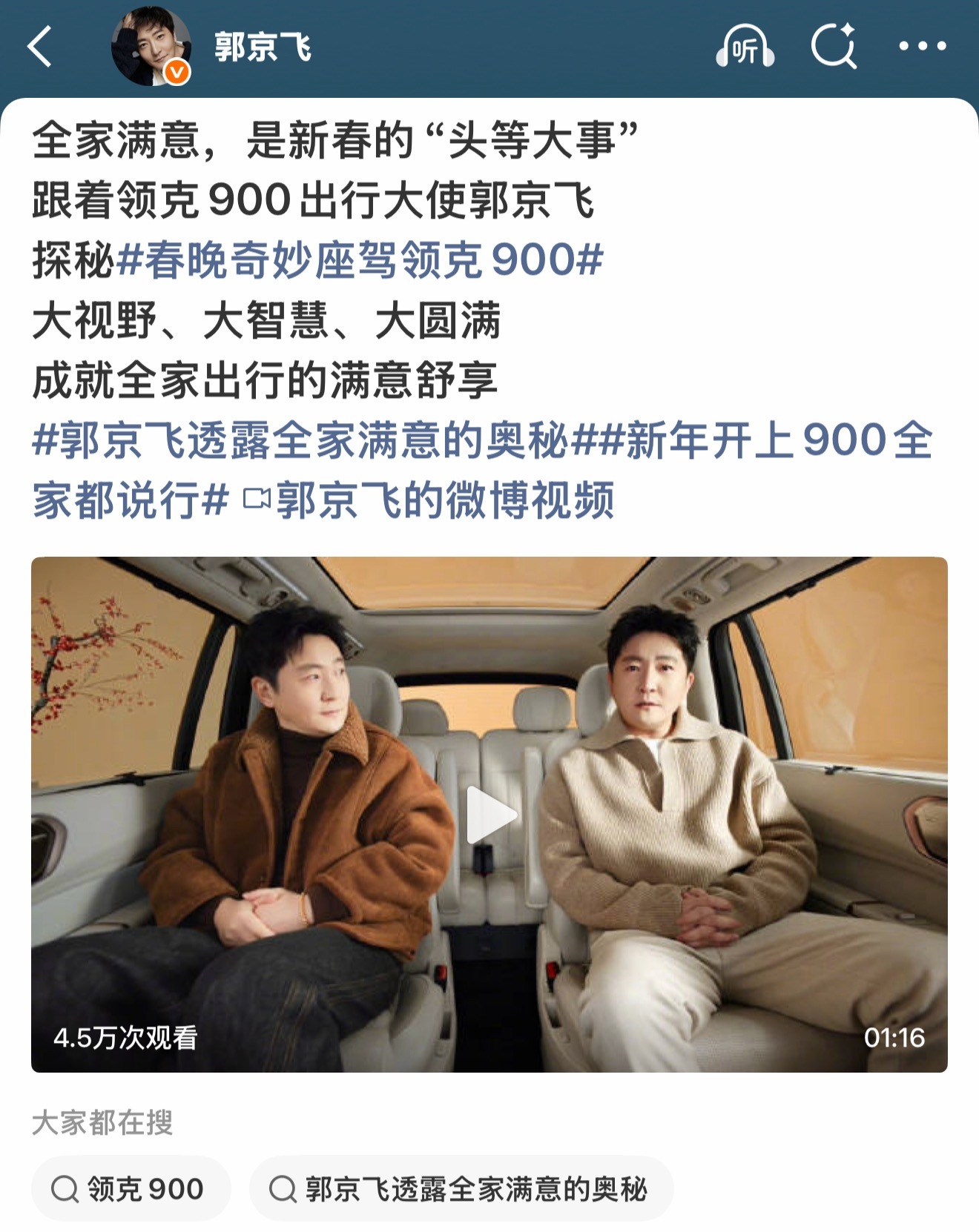 郭京飞透露全家满意的奥秘全家满意是头等大事,郭京飞认证的全家满意座驾,藏着领克900的硬核科技实力