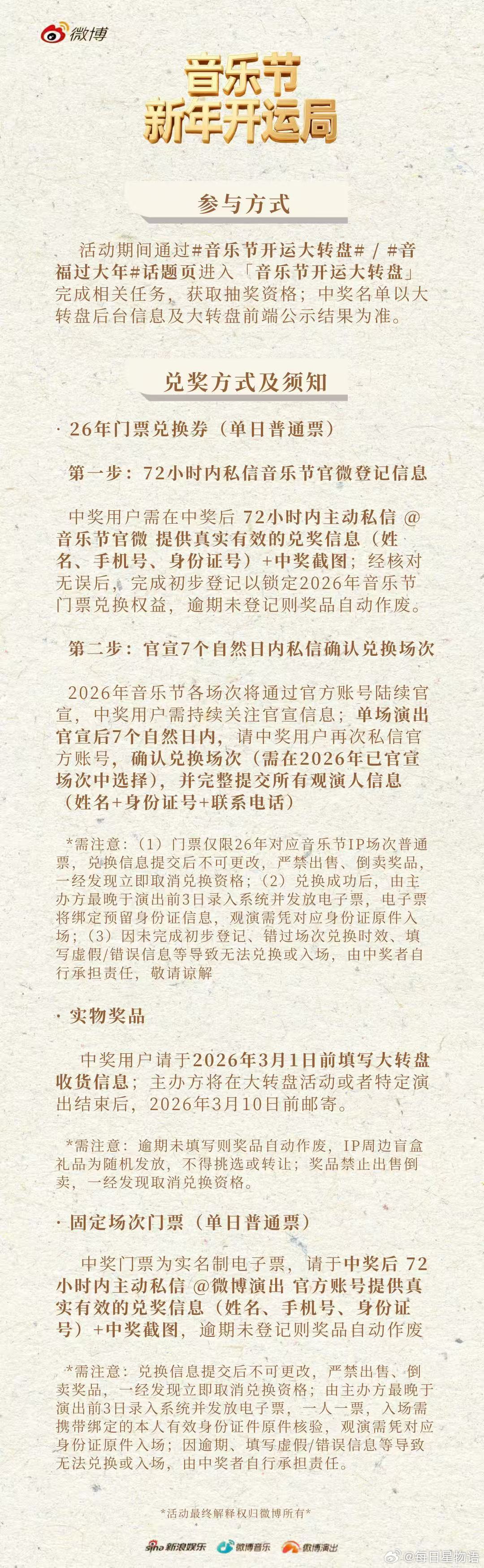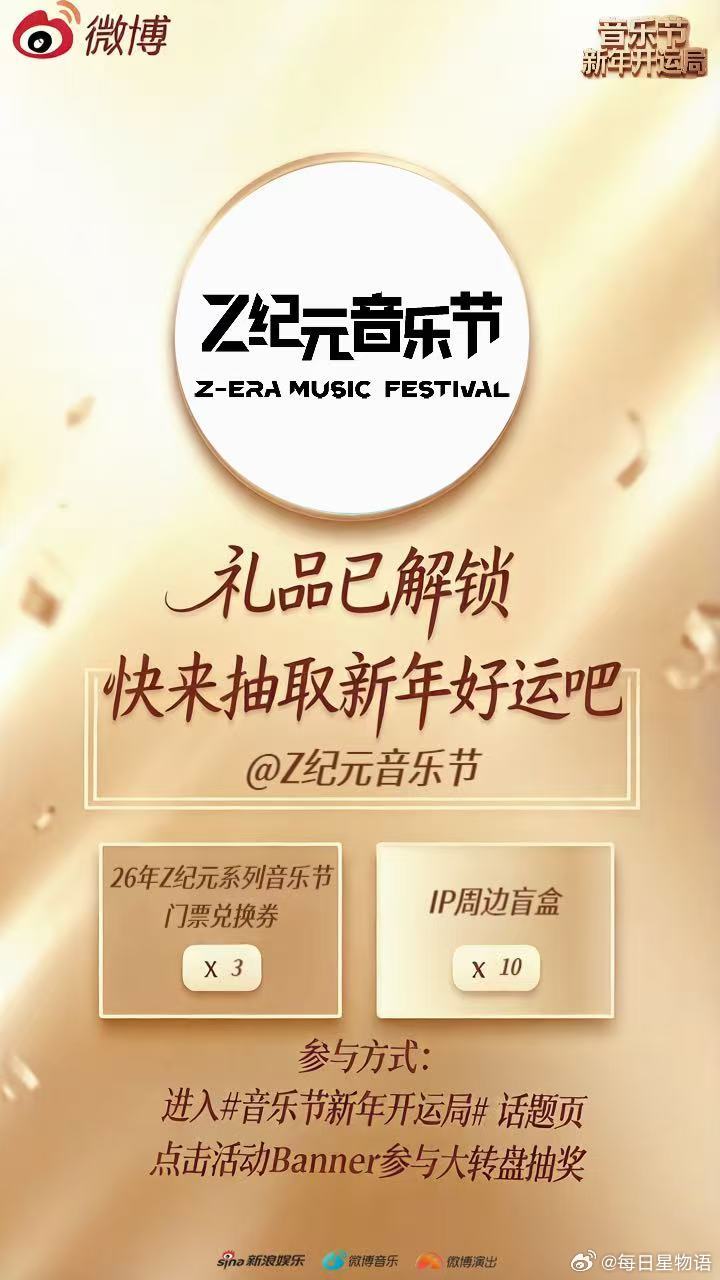 🌟 2026开年第一“乐”——来自Z纪元! 🎡「音乐节新年开运局」今日惊喜:🎁 送出【Z纪元系列音乐节兑换券】3张 + 🎁 IP周边盲盒 10份 📢 带话题 音乐节新年开运局 音福过大年 转转盘,分享你与音乐节的故事/期待,赢开运福利! 🔗 网页链接