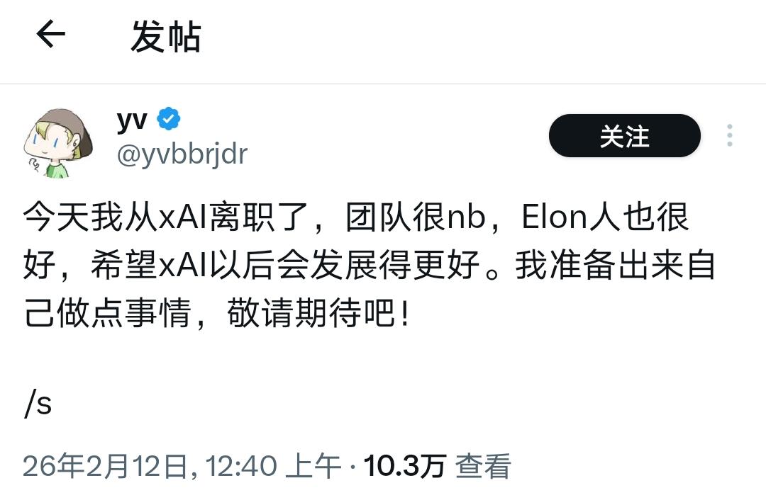 xAI技术团队看样子是集体离职 话说得很委婉,每一个人都觉得对方是好人,我们是分手了,过程很奈斯,分别时,我们还顺祝了各自拥有最好的前程。 但,一个「/s」胜过千言万语。 Source: X