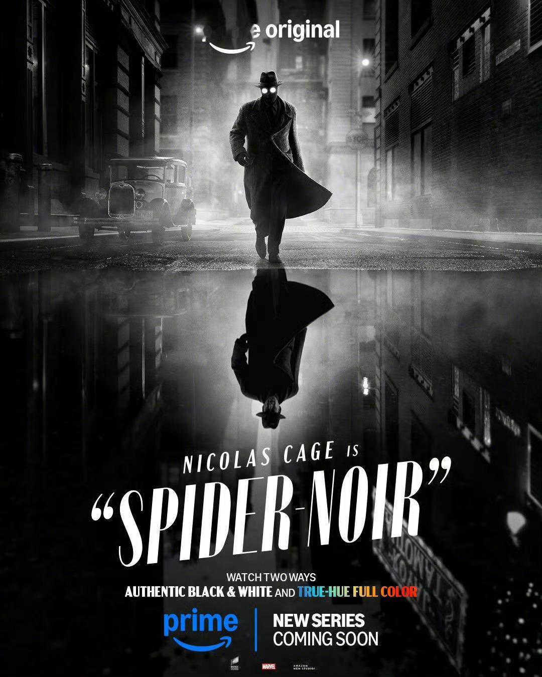 尼古拉斯·凯奇主演漫威独立剧集《暗影蜘蛛侠》两款新海报,今年春季开播,将放出黑白