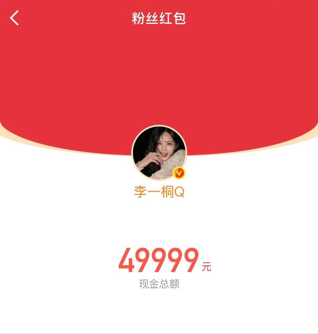 昨天刷到的还是李一桐假唱今天就刷到她在自己微博发了49999的红包有热度对明星来