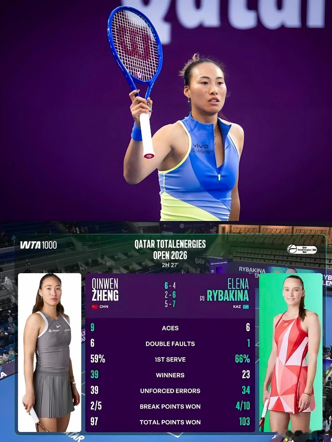 其实郑钦文这次多哈站打的挺好的~ 打了3场3盘比赛,以赛代练,更好地找到比赛的感觉。也检验了一下自己在激烈对抗下的肘部的反应。最后和这两个月WTA发挥最好的女孩打也能抢下一盘,说明还是很有竞争力的,排名打回来只是时间问题。