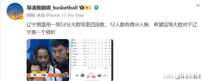 辽宁终结4连败,杨鸣离队首场,赢对手52分!看看媒体专家怎么说[送心] 1月27日,四川成都,一场CBA常规赛打出109比57。 辽宁队赢了52分,四川队吞下20连败。 数字够炸,但光看比分,容易错过这场比赛真正的故事线。杨鸣离队后的第一场,乌戈临时接手,四连败的卫冕冠军撞上联赛垫底队,这场52分大胜,究竟是一针强心剂,还是一张“安慰剂”? 1月26日,辽宁男篮官方发了一则公告,不到三百字。杨鸣因个人身体原因请辞主教练,助理教练乌戈·洛佩斯暂行代理职责。杨鸣当天返回沈阳休整,待身体恢复后俱乐部再安排后续工作 。 25日晚辽宁客场输新疆,第四节全队只得了4分,全场59分创赛季新低。那是压垮骆驼的最后一根稻草。赛后更衣室没人愿意多说话,杨鸣在门口站了快两分钟才离开。 他说过一句话,是2023年夺冠后接受采访时讲的,那时候三连冠刚到手,镜头前他却说:“对于教练这个岗位,坦白讲没人留恋。紧张、窒息,甚至更夸张的情况都会出现。特别是辽宁男篮,外界的期望值非常大,压力扛在我身上,我想象不到拿不到这个冠军会是什么样。” 两年后,他选在身体出状况时递上辞呈。 1月27日晚的四川省体育馆,乌戈·洛佩斯第一次以代理主教练身份站在场边。他做的第一件事,不是搞什么战术革命,而是简化,把球交给赵继伟,把轮换拉平,把防守强度顶上去。 结果上半场就领先20分,第三节打到一半,分差奔着40去了。全场12人全部得分,7人上双,莫兰德14+10+5,张陈治锋13+10,付豪13分,赵继伟只打了15分钟轻松收工。 更衣室里终于有了笑声。 但如果以为辽宁队的麻烦就此翻篇,那就把职业体育想得太简单了。 乌戈自己就很清醒,赛后他没有用“反弹”这个词,说的是“球员们执行力很好”。他不是没带过队,2023年杨鸣赴美学习期间,乌戈作为第一助教就代理过主教练职务,对这支球队并不陌生。问题在于,代理就是代理,俱乐部要的是长期方案,不是一场52分的“止痛药”。 这场对手是四川,一支本赛季0胜20负、单节只得7分、全场57分的球队。把这样的对手赢52分,不足以回答所有问题。辽宁真正的考验在后面,接下来碰广厦、浙江、广东,那才是验货的时候。 比辽宁赢球更值得聊的,是四川怎么输成这样的。 57分,20连败,创下CBA历史连败纪录。数据已经触目惊心,但比数据更让人发毛的是场上的画面,防守漏人后没人互相提醒,进攻跑位像第一次配合,暂停时替补席有人低着头玩指甲。 这不是技战术层面的崩塌,是球队的系统性休克。 四川队深陷资金链紧张和俱乐部控制权之争,管理层自顾不暇,球队处于“躺平式生存”状态 。靠每年几千万的CBA分红过日子,不用降级,不用拼命,没有生存危机就没有改革动力。 这锅不该球员背,得往上看。 CBA没有升降级,已经快二十年了。2005年取消这个制度的时候,初衷是避免假球、稳定商业价值。效果也确实有过,联赛没崩,赞助商没跑,球队数量从12支扩到20支。 但副作用在2026年的今天彻底显形,一部分球队过得太舒服,输多少场都不用怕掉级,赛季还没过半就开始“锻炼新人”,锻炼到连球迷都不愿进场。 四川不是第一个,也不会是最后一个。只是他们刷新了连败纪录,成了这个制度疮口上最显眼的那道疤。 辽宁这场52分大胜,会被记在常规赛战绩表上,也会被记在四川队的耻辱柱上。但对两支球队来说,真正的战役都不在这109分和57分里。 杨鸣走后,谁能稳住这支王朝余温尚存的队伍?乌戈能不能拿到“转正”合同?更衣室里那拨拿过三个冠军的老将,心气还能顶多久? 首胜还要等几轮?这支球队到底要重建,还是继续“混”下去?那个20年前拿过总冠军的队徽,还有没有人记得它曾经不是这副模样? CBA的第20轮,用52分划出一道鸿沟。鸿沟这边,赢球的辽宁不敢松气。鸿沟那边,输球的四川不知道往哪走。