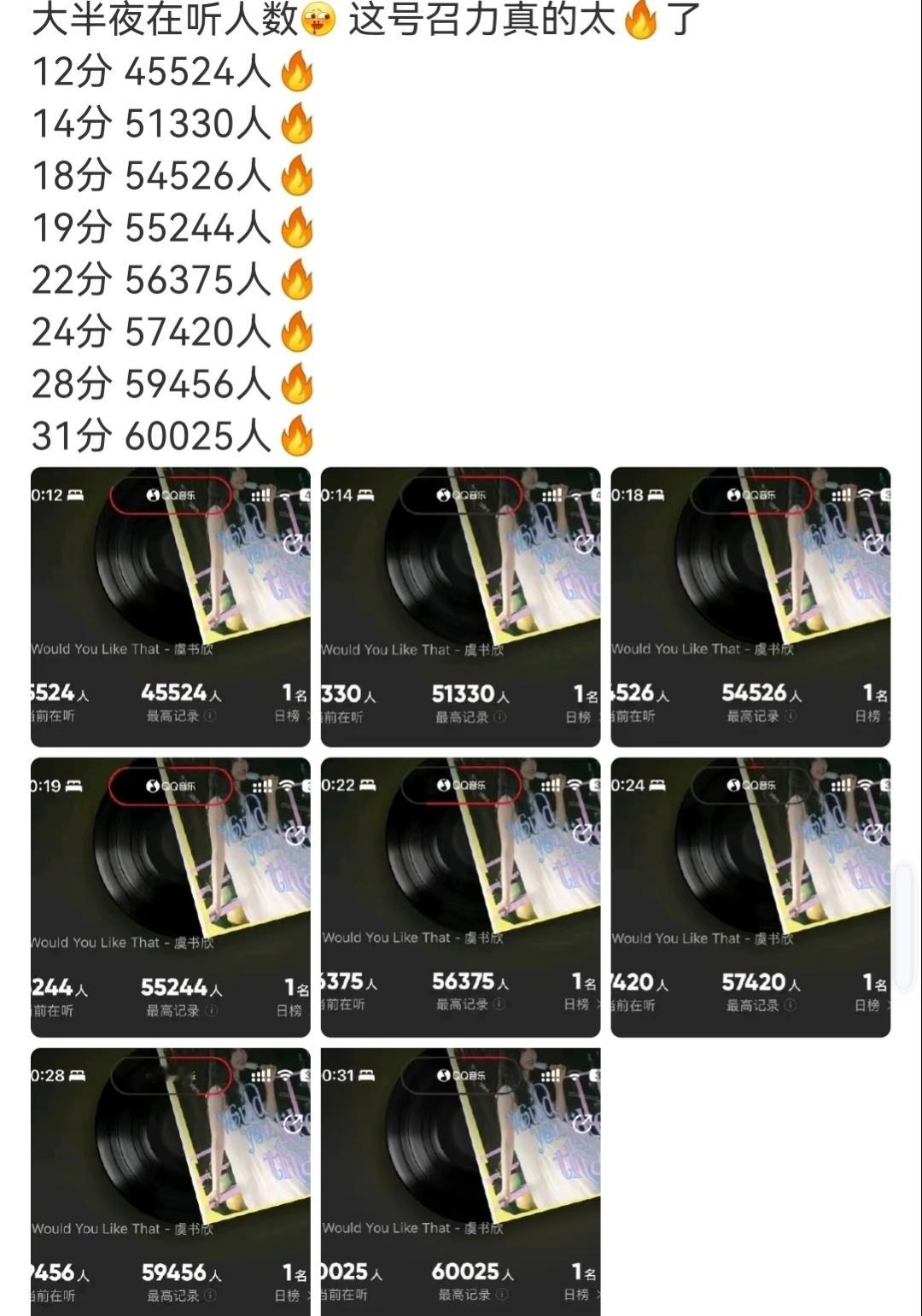 虞书欣新歌仅有13分钟就超了11月份梦时的最高收听人数峰值 且虞书欣新歌登顶音乐榜指数top1 女顶流号召力有…