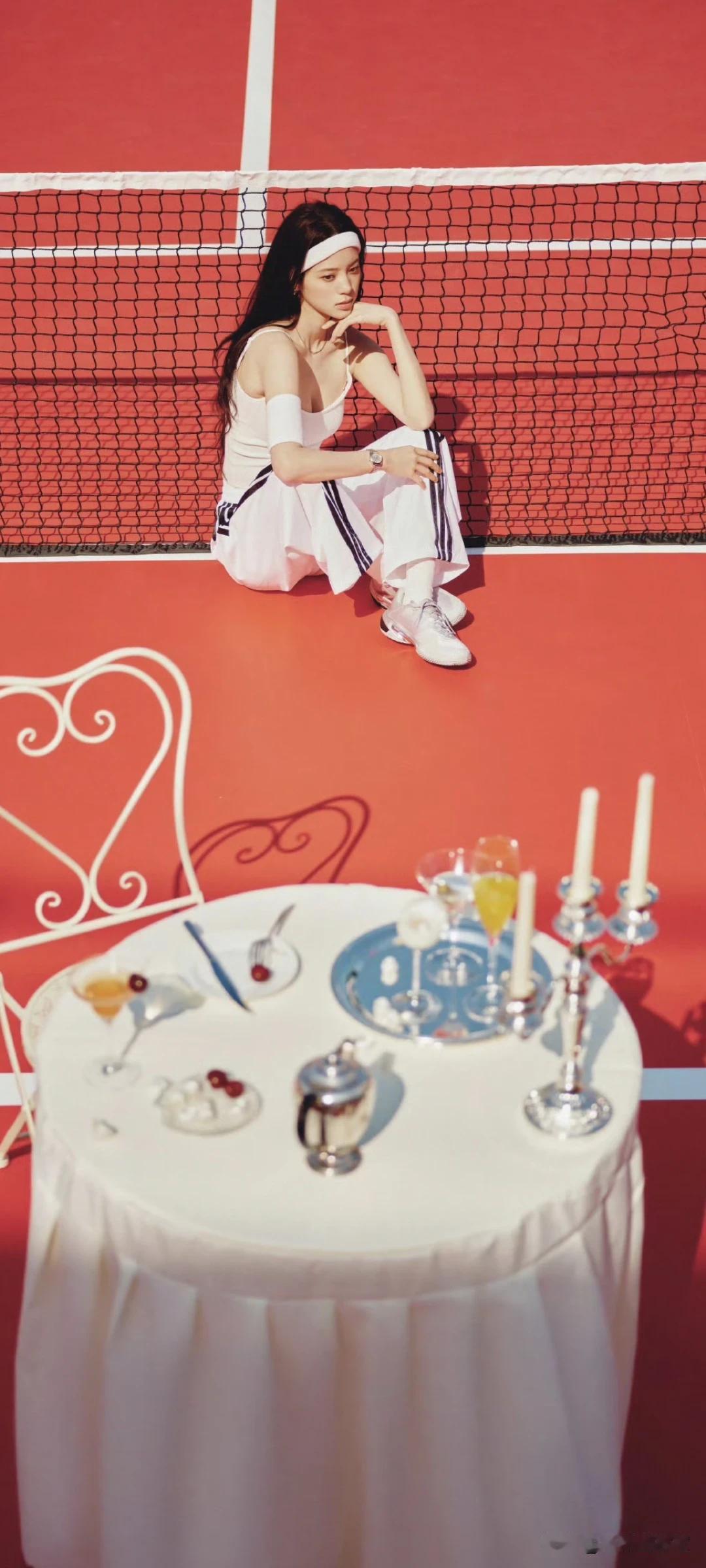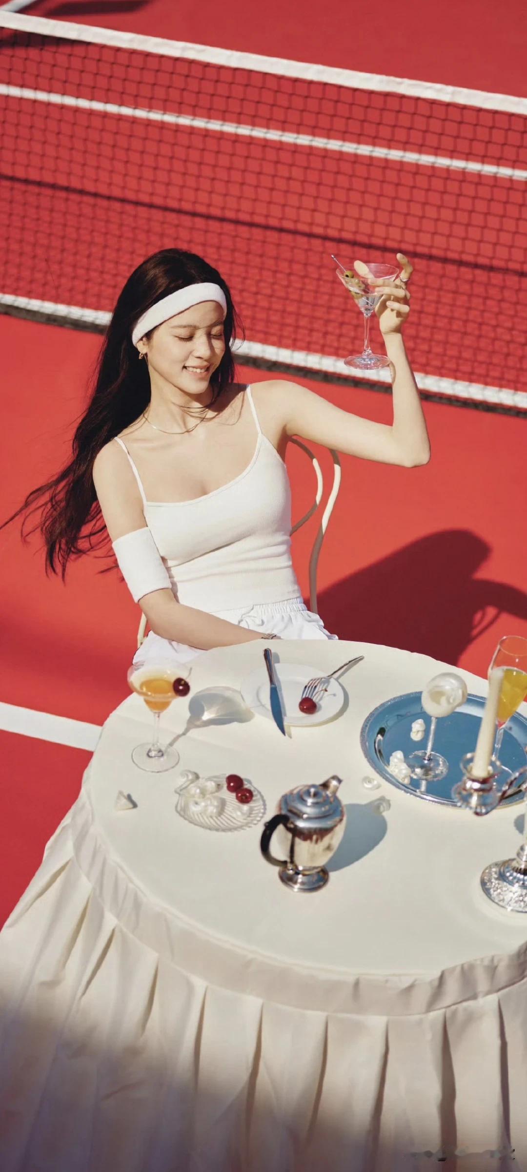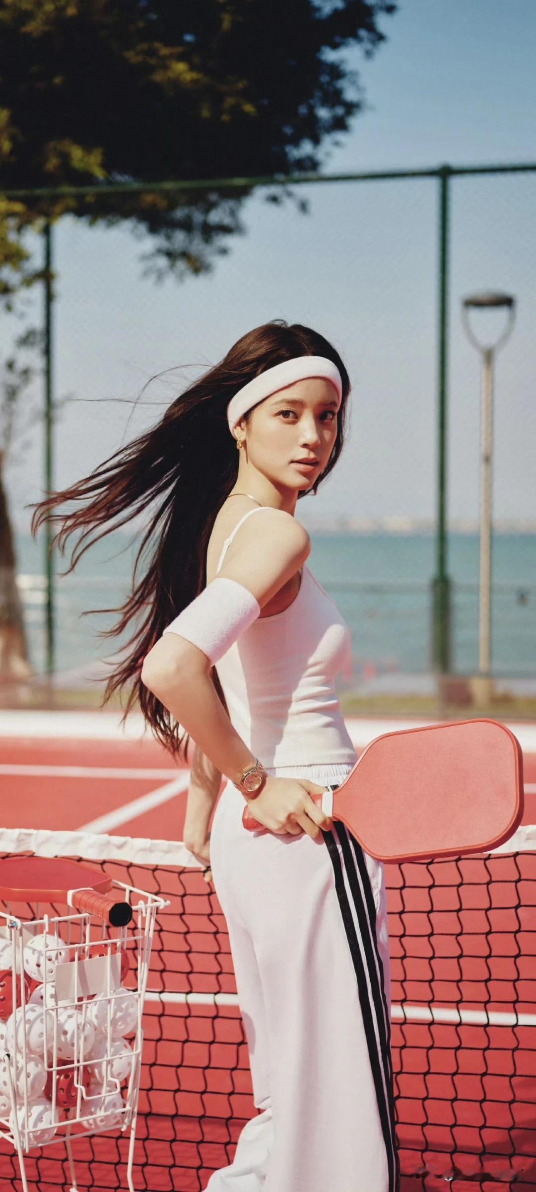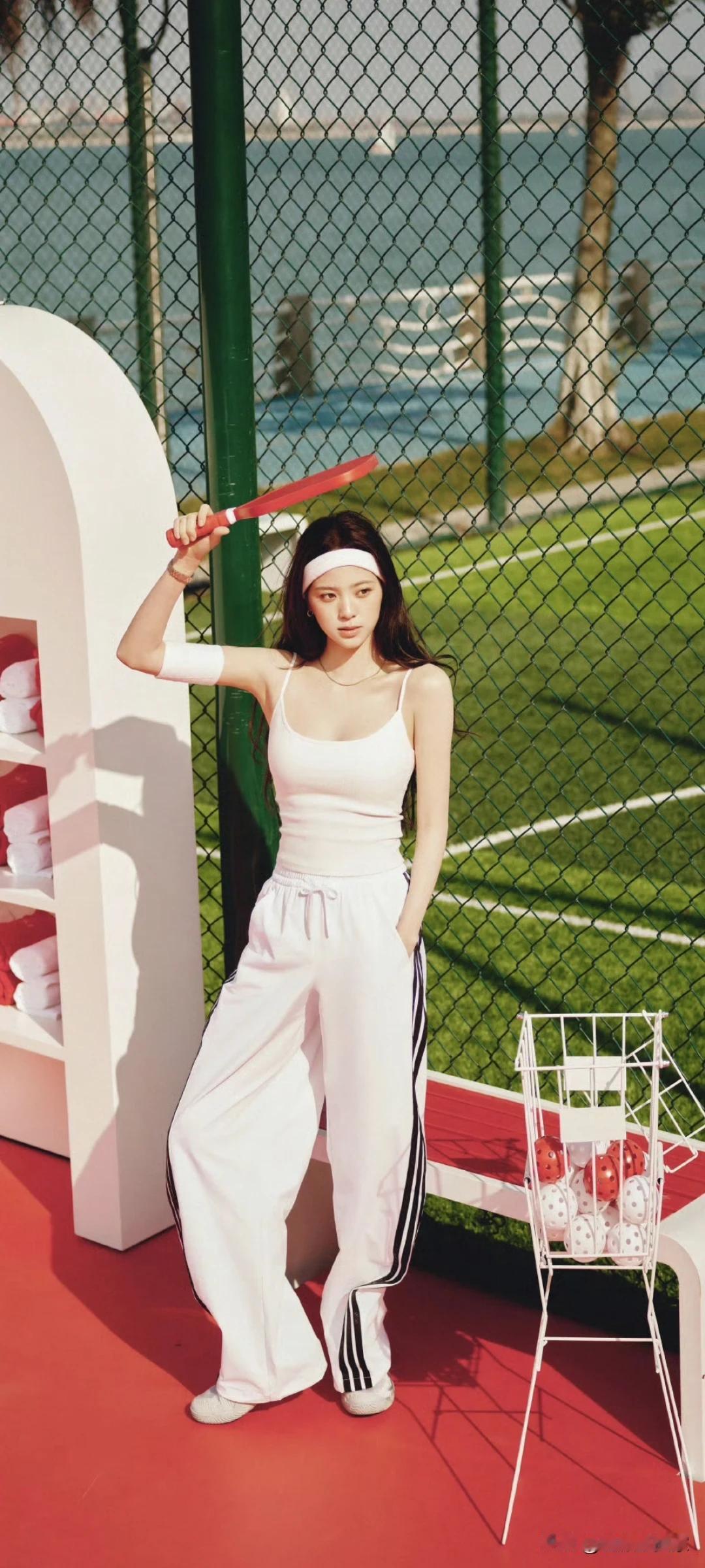 欧阳娜娜写真壁纸~白色系运动穿搭太绝了!在球场也能又飒又性感!
