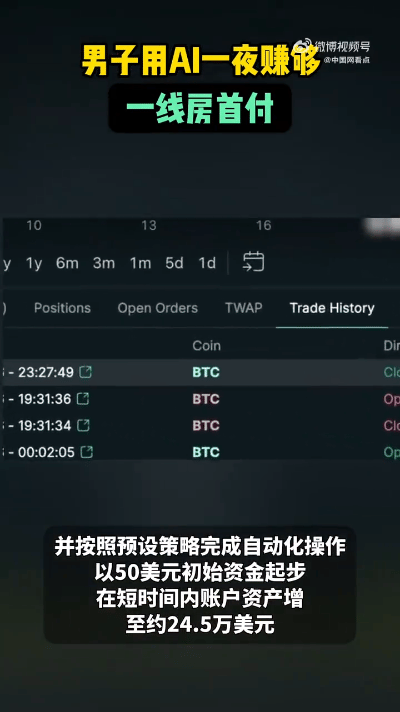 男子用AI一夜赚够一线房首付50美金起家靠AI一夜翻了5000倍AI不仅仅在国内爆火,在国外也占据了一席之地,甚至打破了炒股信息的垄断不对称,不过窗口期倒是很短的,大概只有只有最近是吧,强烈呼吁国内股民点关注,这个不但可以开始学习部署,还能释放消息近期有个O计划或许与openclaw有关,希望大家多了解下!