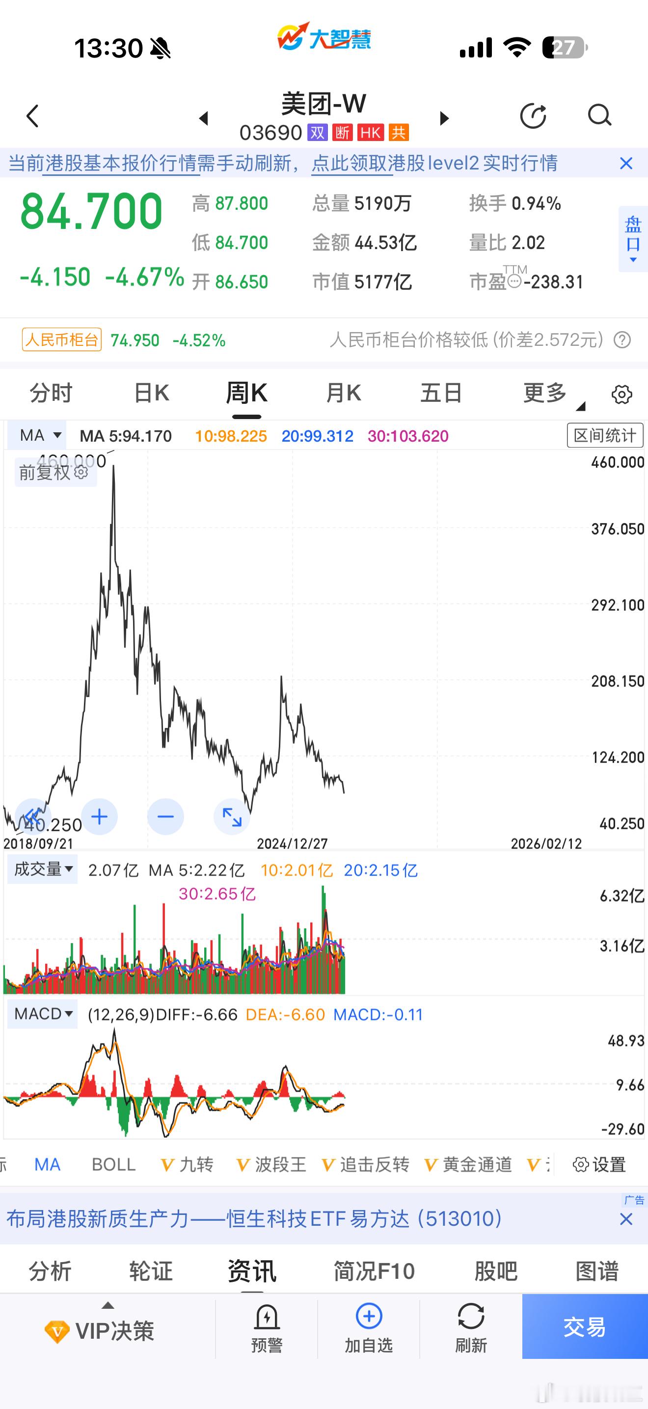 美团腾讯这一段时间都跌很多