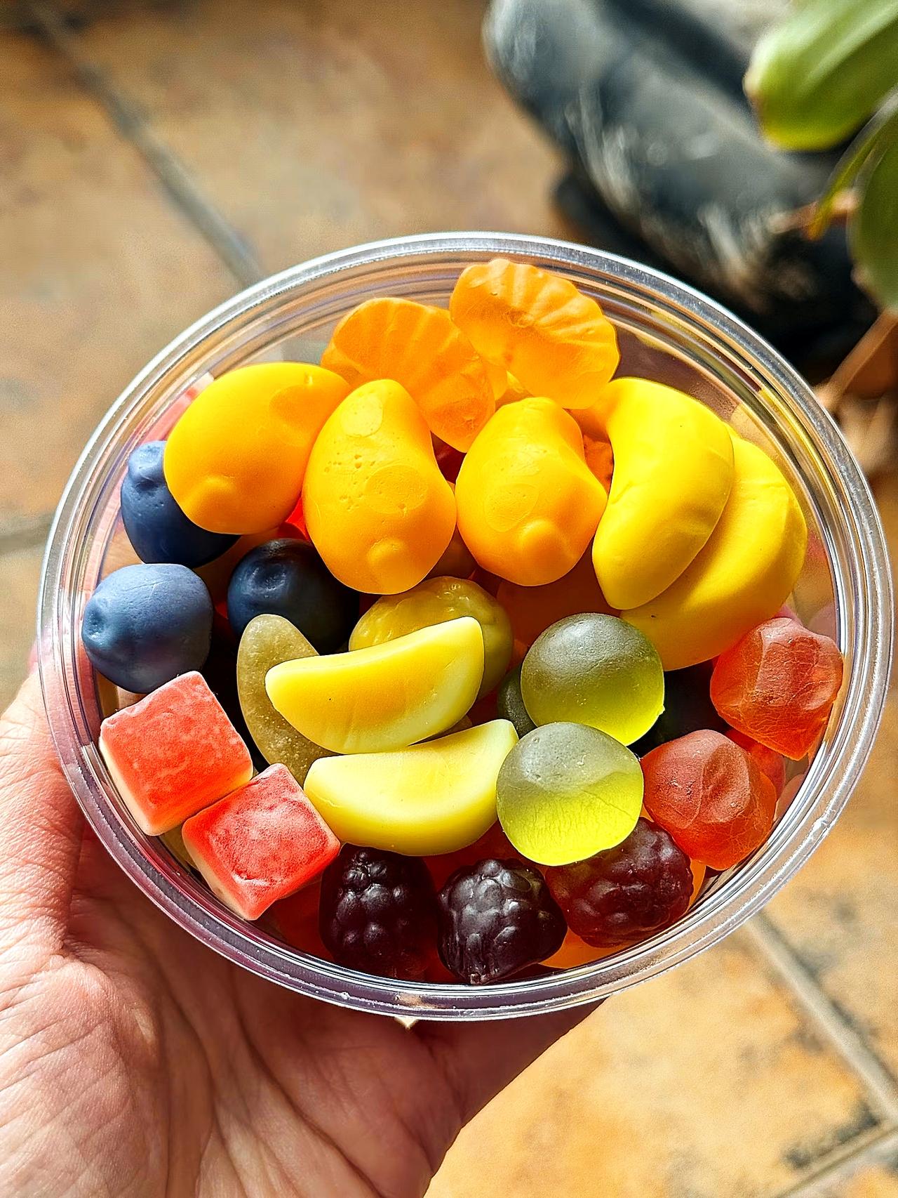 过年吃这样的糖,会不会幸福加倍,快乐加倍,买一大袋回家,全家一起吃,我妈会不会打我[奸笑] 好不好吃我先不说,就冲着这个造型,这个手感和这个颜色,不问价格,也必须买一袋回家过年[微笑] 不仅小孩子可能会喜欢,就连我这个大人看着,心情都好很多[大笑]你们吃过这样的水果糖吗?