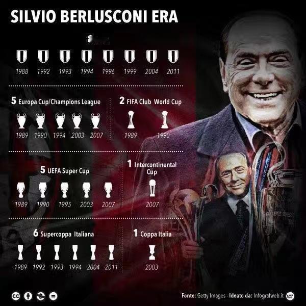 盘点贝卢斯科尼时期历届主教练: 第一任 利德霍尔姆 1984.7~1987.4 第二任 卡佩罗 1987.4~1987.6 第三任 萨基 1987.7~1991.6 第四任 卡佩罗 1991.7~1996.6 第五任 塔巴雷斯 1996.7~1996.12 第六任 萨基 1996.12~1997.6 第七任 卡佩罗 1997.7~1998.6 第八任 扎切罗尼 1998.7~2001.3 第九任 塔索蒂、老马尔蒂尼 2001.3~2001.6 第十任 特里姆 2001.7~2001.11 第十一任 安切洛蒂 2001.11~2009.6 第十二任 莱昂纳多 2009.7~2010.5 第十三任 阿莱格里 2010.7~2014.1 第十四任 西多夫 2014.1~2014.6 第十五任 因扎吉 2014.7~2015.6 第十六任 米哈伊洛维奇 2015.7~2016.4 第十七任 布罗基 2016.4~2016.6 第十八任 蒙特拉 2016.7~2017.11