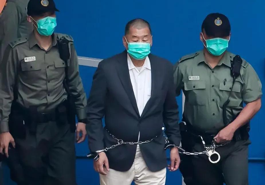 78岁的黎智英,因串谋勾结外国势力罪和发布煽动刊物罪两罪并罚,被判处20年有期徒刑! 大家看一下图片,香港的法庭上,黎智英锁上刑具,不仅有手铐,还有一条铁链缠身,被另一名警员牵着。这让我想起我们的拴狗链。当年,自己作为西方的一条狗,如今,狗链在我们的警员手里。 20年有期徒刑,足可以让他惨死在里面了!