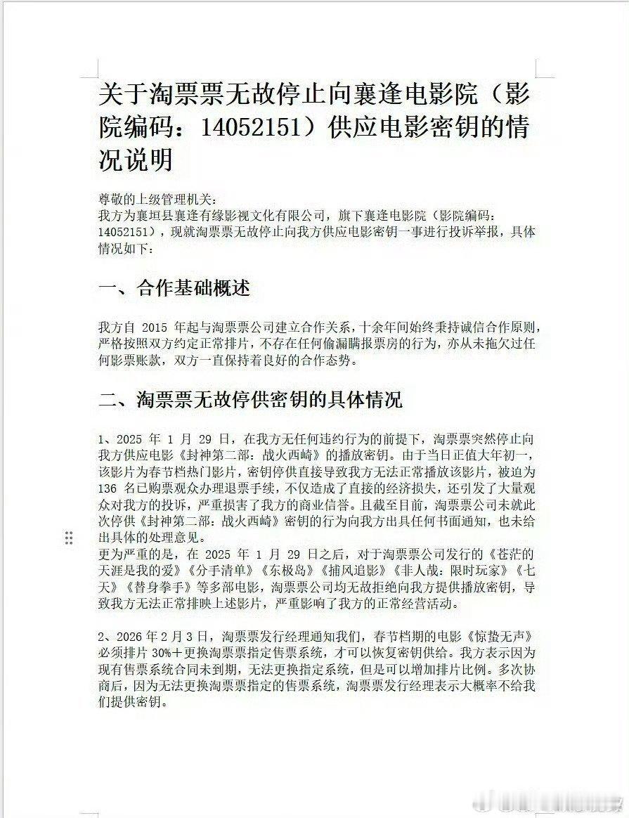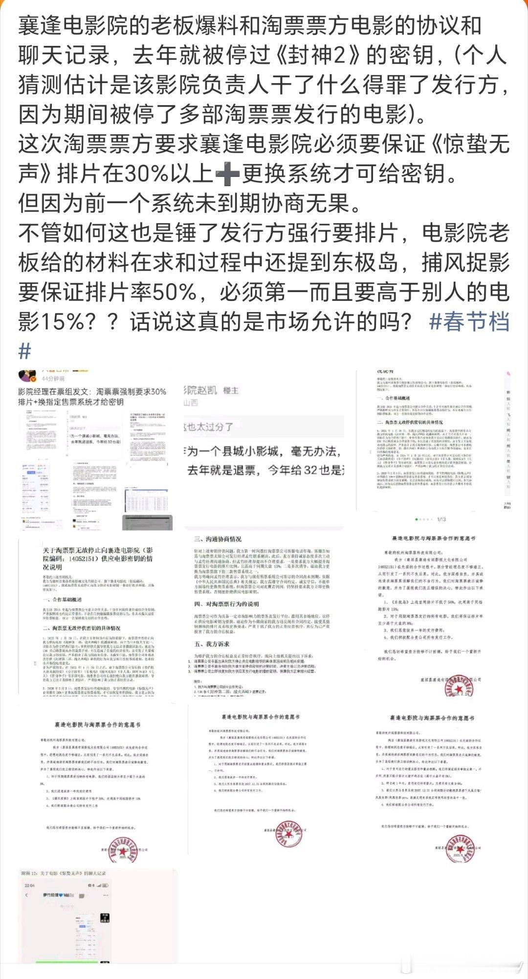 院线经理在票组吐槽,淘票票强制要求30%排片+换指定预售系统才给密钥,如果是真的话,以后直接用猫眼了,这个淘票票让人好失望!