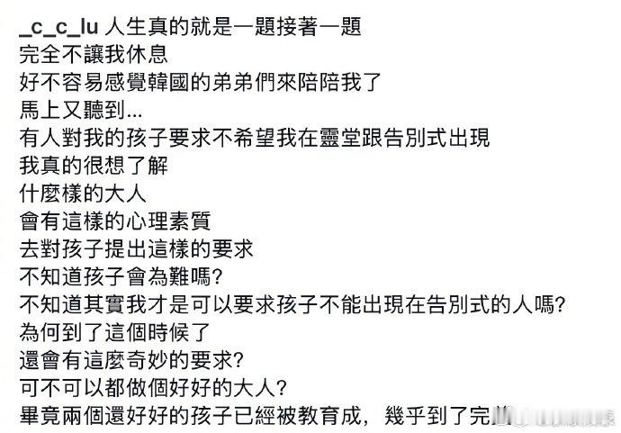 前妻控诉袁惟仁家属袁惟仁家属不让前妻去灵堂和告别仪式 12日凌晨,袁惟仁前妻再发文,控诉袁惟仁的家属通过孩子转达,希望她不要去灵堂和告别仪式。