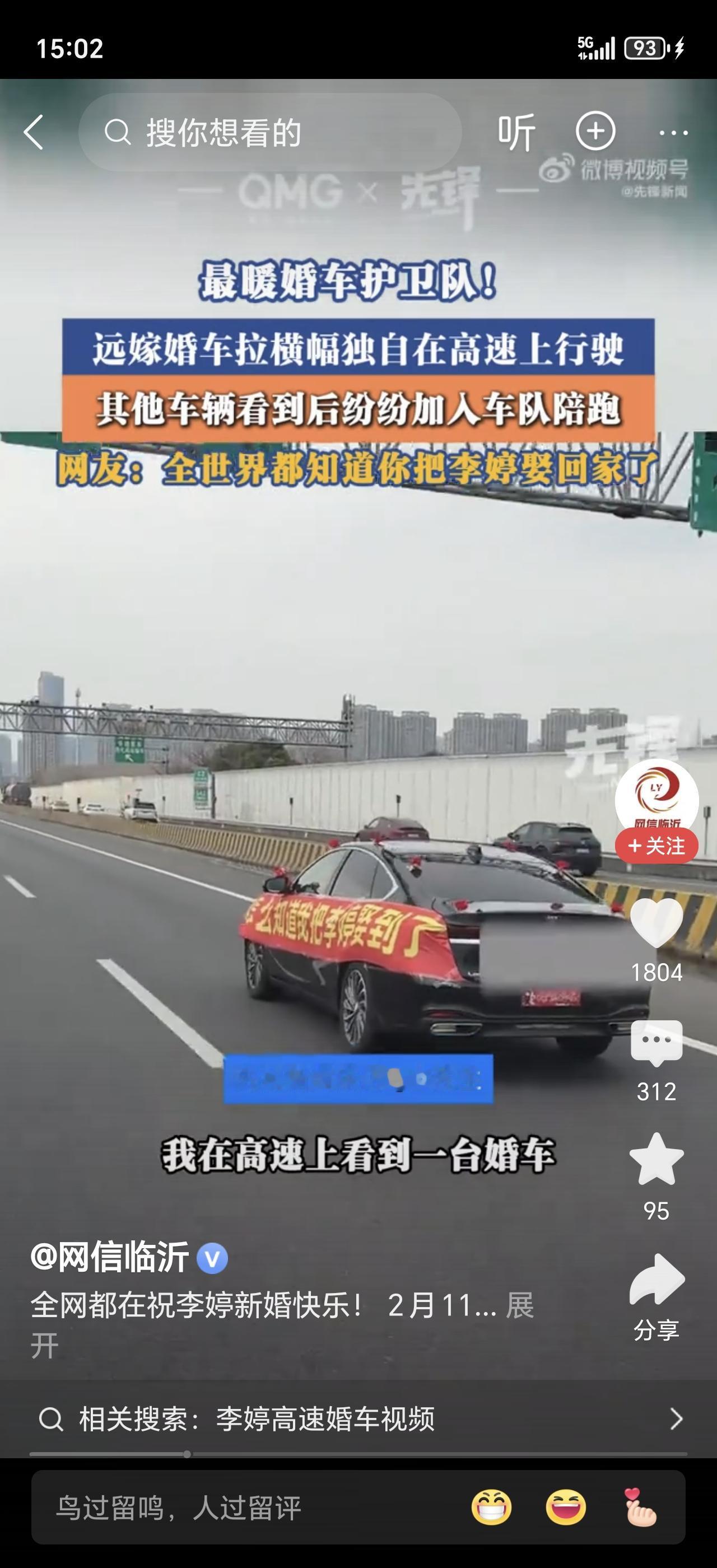 热搜第一!全网都在问同一个问题:李婷到底是谁?答案揭晓那一刻,无数人破防了… 2月11日,正月初四,“全网都在祝李婷新婚快乐”突然冲上热搜榜首。微博话题两小时阅读破3亿,抖音视频播放超3.5亿。所有人都懵了:李婷是谁?凭什么让亿万网友集体送祝福? 故事要从沪陕高速上一辆孤独的黑色婚车说起。新郎自驾,载着新娘李婷从上海奔赴河南。没有豪华车队,没有伴郎伴娘,车身上只贴着一句略带炫耀的横幅——“你怎么知道我把李婷娶到了?” 这一幕被返乡过年的董先生偶遇。他摇下车窗,冲着新人喊了句“新婚快乐”。就是这声祝福,像石子投入湖心,涟漪越荡越大。一辆、两辆、十辆……陌生车辆纷纷打开双闪,自发加入护送车队,交替陪跑,最长的默默跟了100多公里。 服务区里,新人下车鞠躬致谢,分发喜糖喜烟。新郎红着眼眶说:“没想到会有这么多人为我们祝福。”那一刻,冷清的服务区变成了最暖的婚礼现场。 视频传到网上,评论区彻底沦陷。“我也是远嫁,看到陌生人护航直接哭了”“这才是中国式浪漫,不需要豪车,有爱就够了”“全网都知道你把李婷娶了,一定要对她好啊!” 有人说,这哪是孤独的远嫁,分明是一场全民参与的盛大婚礼。双闪是烛火,高速作礼堂,而那些素不相识的车窗后挥动的手臂,就是最体面的嫁妆。 更动人的是,热度爆棚后,没有媒体去人肉新郎的身份,没有狗仔去蹲点李婷的老家。网友默契地守住分寸:祝福给你,隐私留你。这份克制的善意,比热搜本身更珍贵。 李婷是谁?她可以是远嫁的邻家女孩,是奋斗多年的普通白领,是每一个为爱奔赴的姑娘。我们祝福李婷,其实是在祝福所有勇敢追爱的人——愿你的奔赴不被辜负,愿你的孤独有人护航。 你有没有为陌生人的幸福感动过?如果是你,会在高速上为这对新人鸣笛送祝福吗?评论区聊聊那些让你破防的瞬间。