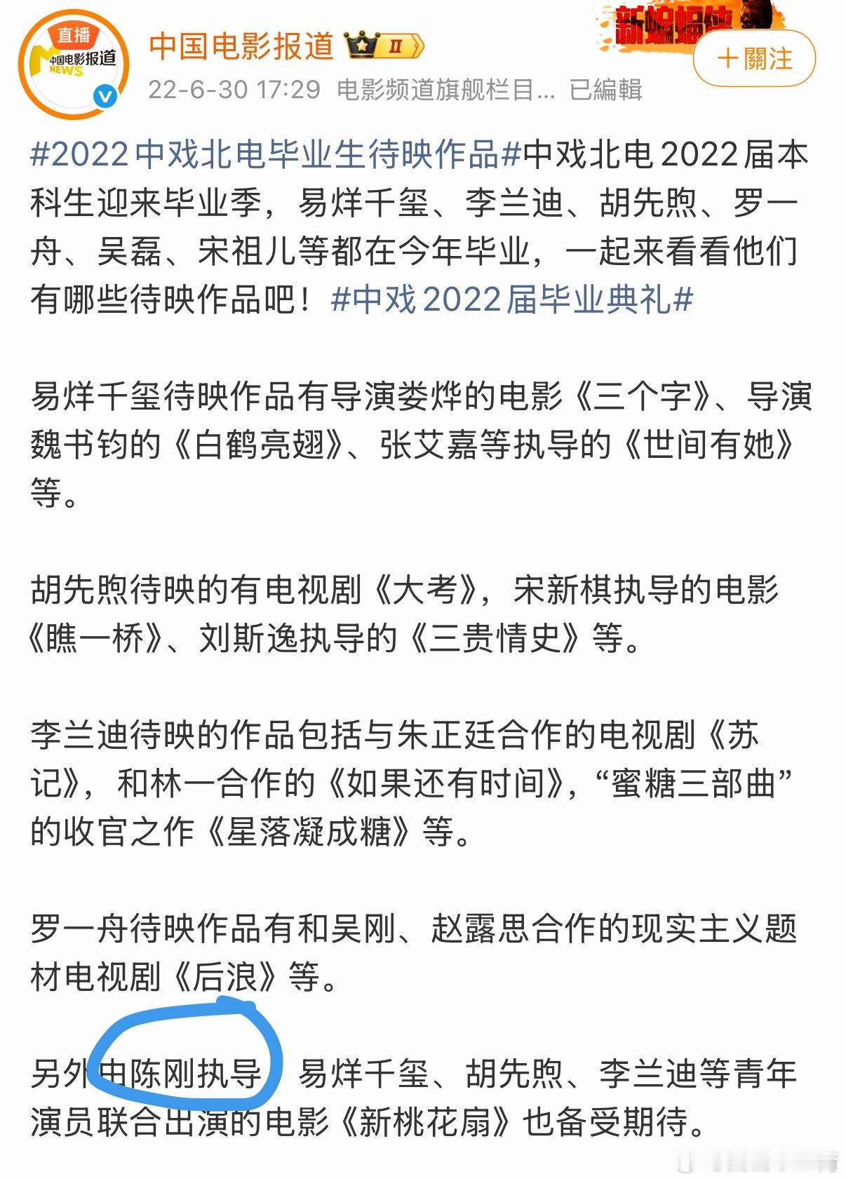 中戏表演系原主任陈刚主动投案 中戏表演系主任陈刚自首 ,曾执导由易烊千玺、刘昊然、李兰迪主演的《新桃花扇》,也是张雪迎的老师