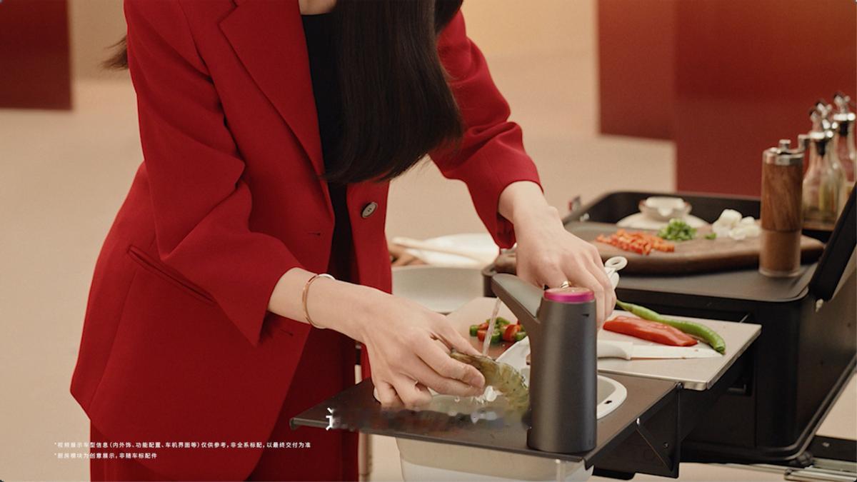零跑D19前备厢居然能做饭?“女厨神”姜妍真就这么干了。 “男有贾冰,女有姜妍”,这两位在内娱堪称新一代“厨神”,做饭不光不挑食材,现在连地方都不挑了,有台车就能办到。 我这不是夸张,姜妍最近直接拿了一台零跑D19,把它的前备厢当厨房,做了一顿饭。而之所以能做到这一点,是因为过去一般只出现在舱内或后备厢的220V电源,现在D19在前备厢里也给你装上了。打开前备厢,你就可以获得稳定的电力输出,除了用电磁炉做饭,还能用上各类电器或户外设备,玩出更多花样。 此外,这前备厢不仅有176L容积,还采用了L型低开口与防泼可冲洗设计,收纳放置比较重的物品很轻松,而且也不会积水、不留污渍,做饭弄脏了打理起来也方便。 像问界M9的前备厢不就因为三种交互开启方式被称为“智慧收纳舱”嘛,敢情现在这9系旗舰SUV们,都在空间与更多设计上提供各类创意玩法,不光处处都是豪华仪式感,零跑D19还靠着供电+大空间提供了更多玩法,给足了咱们用户情绪价值。 作为一台9系旗舰,零跑D19还有1280TOPS的双8797芯片、有半苯胺头层真皮,更有三电机四驱+千伏高压等等配置。目前,D19正在盲订中,感兴趣的话不妨去研究研究。