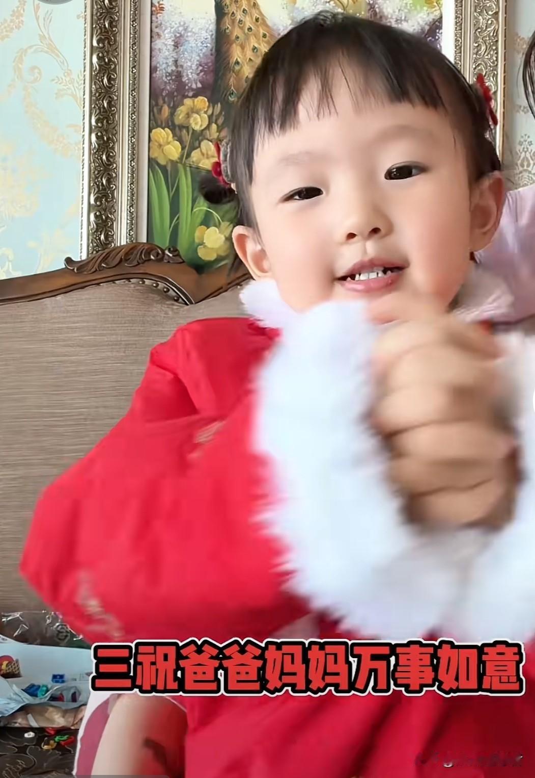 今天中午,黄一鸣更新了一则闪闪的视频。视频中,闪闪一边唱着《祝福歌》,一边为爷爷奶奶、姥爷姥姥、爸爸妈妈、叔叔姨姨们做出祝福的动作。网友们观看了闪闪的视频后,纷纷为聪明可爱的闪闪点赞。有人说,小闪闪真是喜庆,宛如年画里的福娃,尽管父爱缺席,却依旧开朗活泼,给电子屏幕前的叔叔姨姨们带来了很多快乐。
