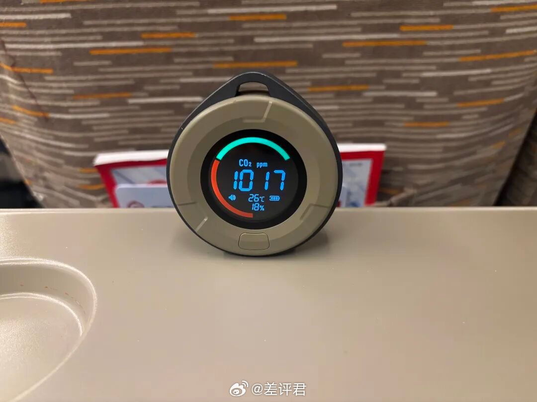 所以这么看起来,高铁二氧化碳浓度基本都不会出问题,更不会因此导致人昏睡。我们还带上飞机测试了一波,维持在2000ppm左右。所以夜不存在飞机的换气能力比高铁好多了的说法。