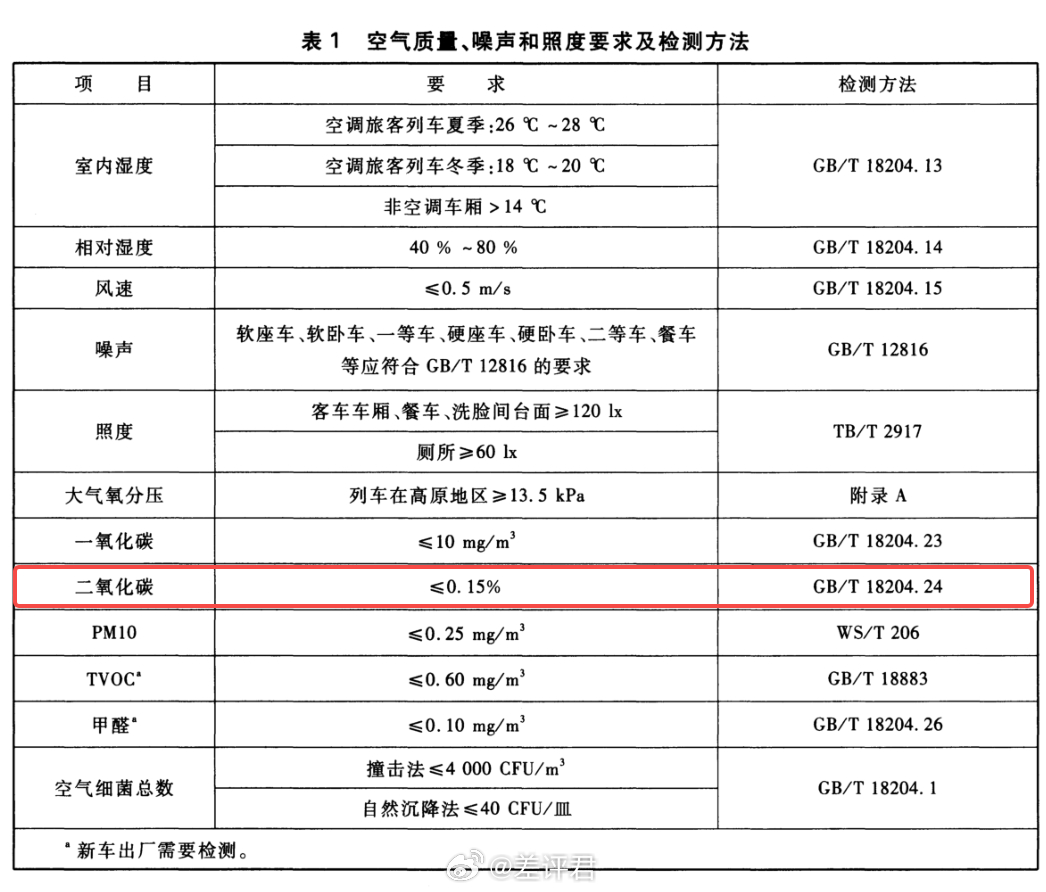 我还查了欧洲的铁路标准要求的是,在涉及节能运行模式、极端气候条件或隧道通过时,允许车内CO₂ 浓度上升至5000ppm。这么对比下来,不存在中国的标准不合格,甚至可以说更优。