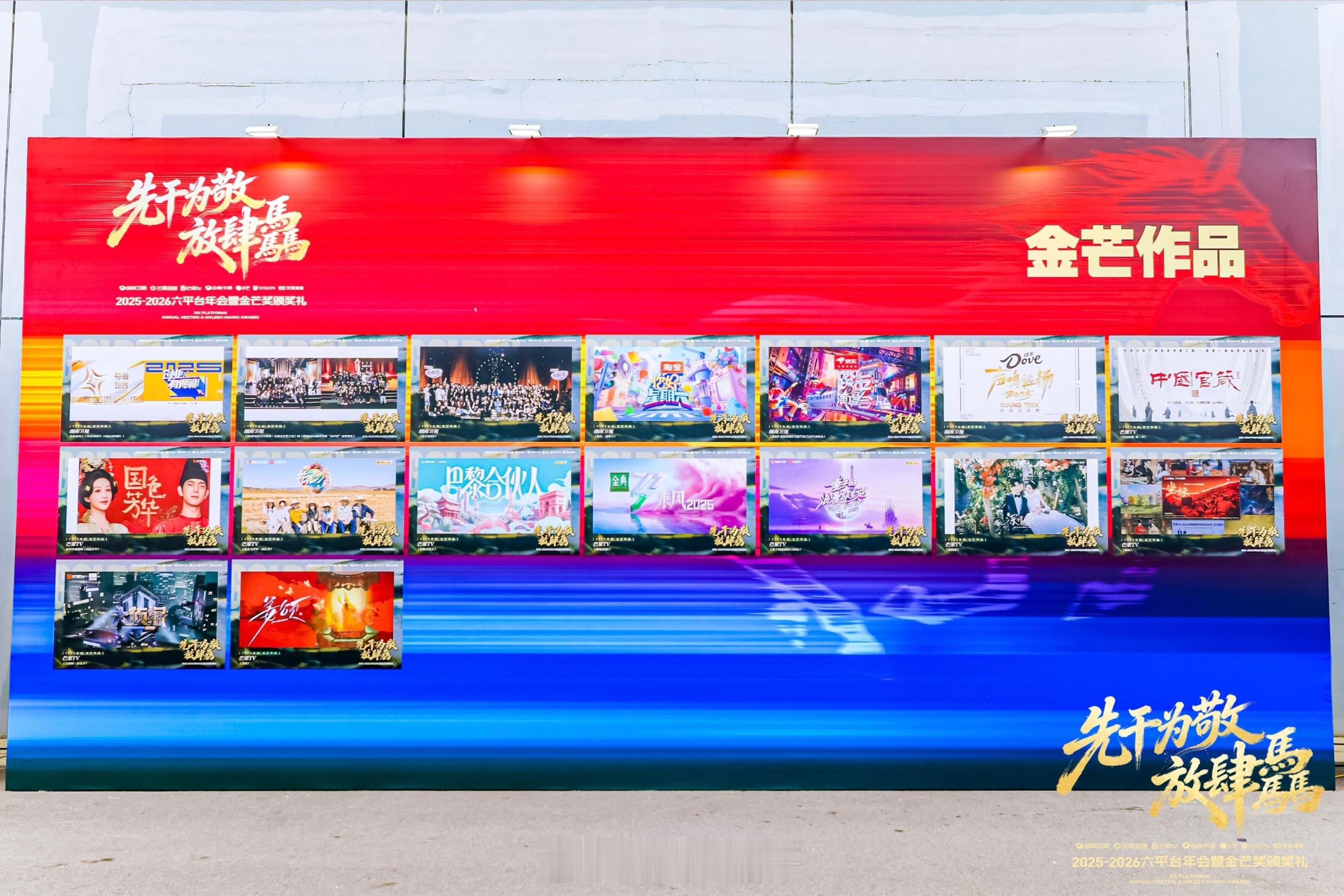 芒果年会🥭金芒作品剧集:《国色芳华》《深情眼》综艺:《花儿与少年》《歌手2025》《你好星期六》《乘风》《大侦探》《声鸣远扬》《妻子的浪漫旅行》《巴黎合伙人》《夺金》《创业有的聊》晚会:《跨年演唱会》《金声奖》短剧:《姜颂》纪录片:《中国官箴》
