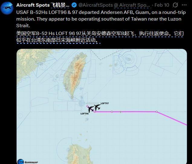 近日关岛安德森空军基地的两架B-52 H轰炸机正在台湾附近进行“炫耀武力”行动。两架KC-135同温层加油机从冲绳嘉手纳空军基地起飞,在空中为他们加油烽火问鼎计划全球武器装备盘点每天认识一件兵器