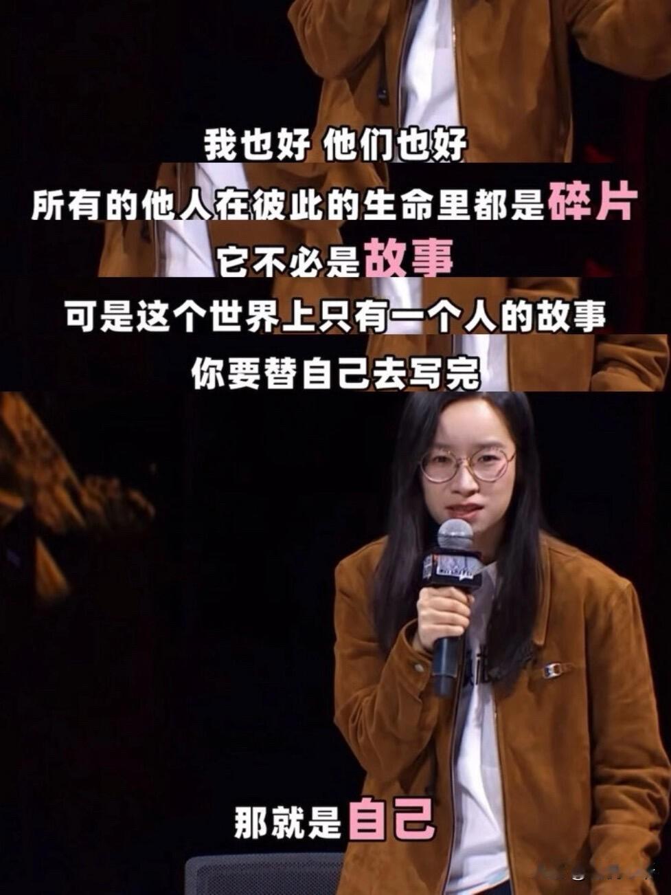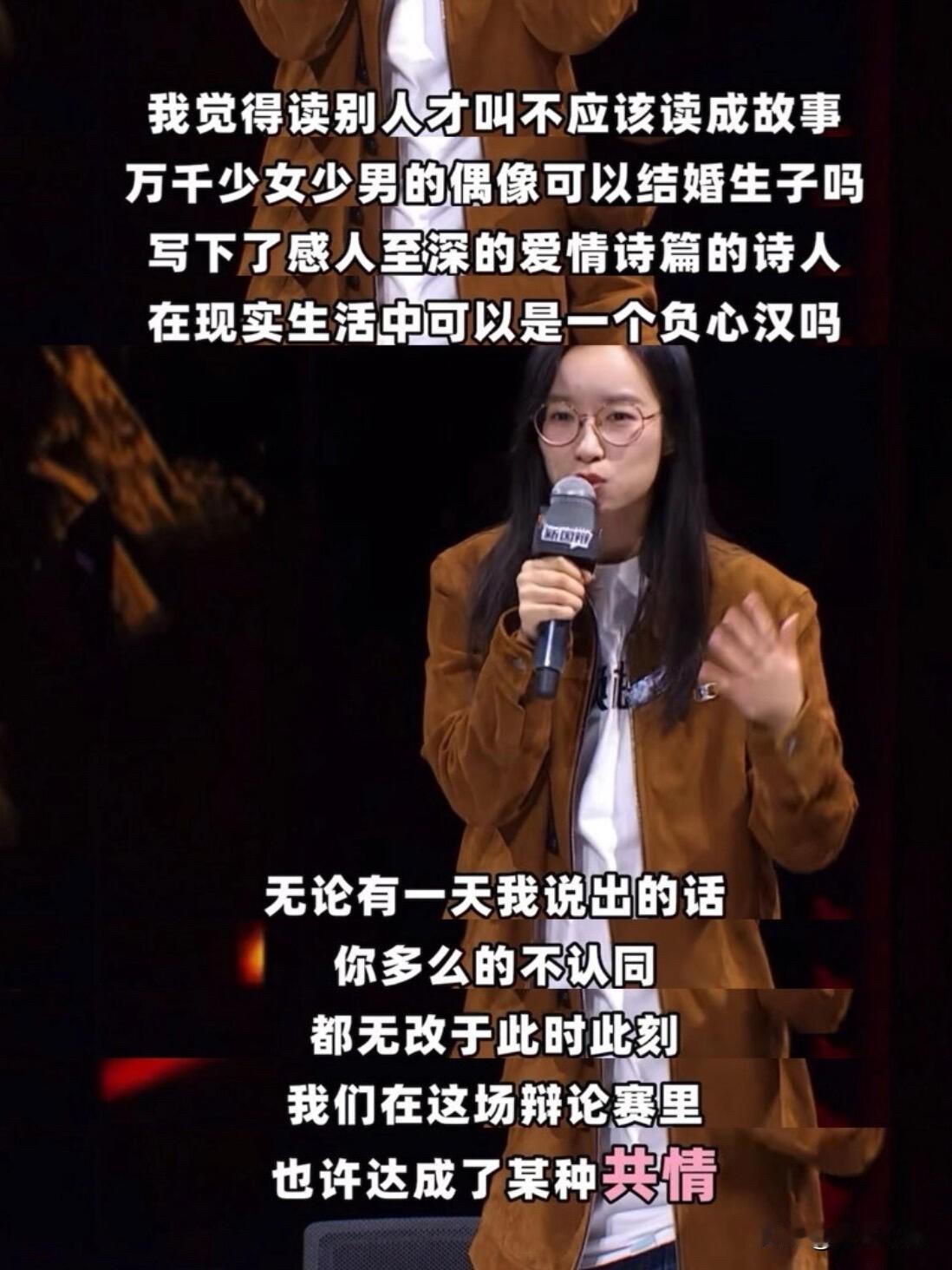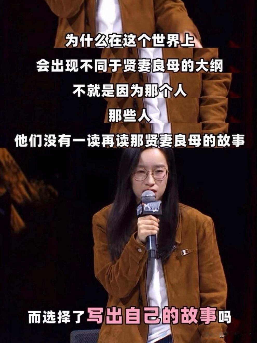 被詹青云这段结辩狠狠戳中了!反复看了好多遍,每一遍都觉得心里被狠狠触动,瞬间就懂了读别人的故事和写自己的故事的意义。 小时候和大家一样,读三国水浒,向往里面的英雄意气,总想着活成那样的模样。可长大才发现,那些故事里的女性,不是脸谱化的配角,就是活成别人的贤内助,根本没有能让我们代入的人生。 就像那位植物画家的妻子,一辈子活在丈夫的故事里,最后只说出一句“我好委屈”。原来不是我们不想读故事,是没有属于我们的故事。 读故事是被动接受,写故事才是主动活自己。女性书写从不是口号,而是不想再当旁观者,不想再让渡自己的人生。那个读三国的女孩总会醒来,拿起笔,写自己的故事就够了!