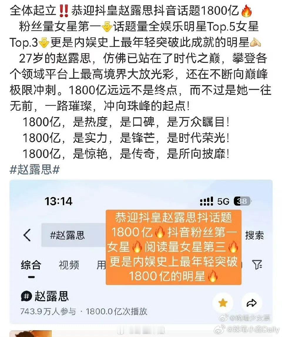 赵露思抖🎶单人播放量抖破1800亿,微博超like1700+,95🌸直接断层第一,官宣商务百雀羚以后,一月大涨98%,卖了3.76亿,露思不愧是年冠爆剧🌸,商业价值和国民度超级顶!