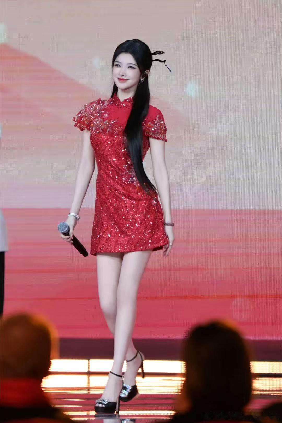 戴燕妮红色闪钻旗袍 谁被戴燕妮红色闪钻旗袍美晕!正红配闪钻,东方韵味直接拉满,身段气质双绝,一出场就是全场焦点。