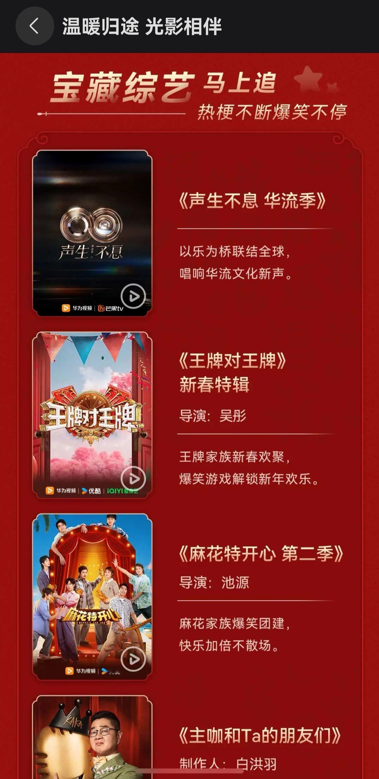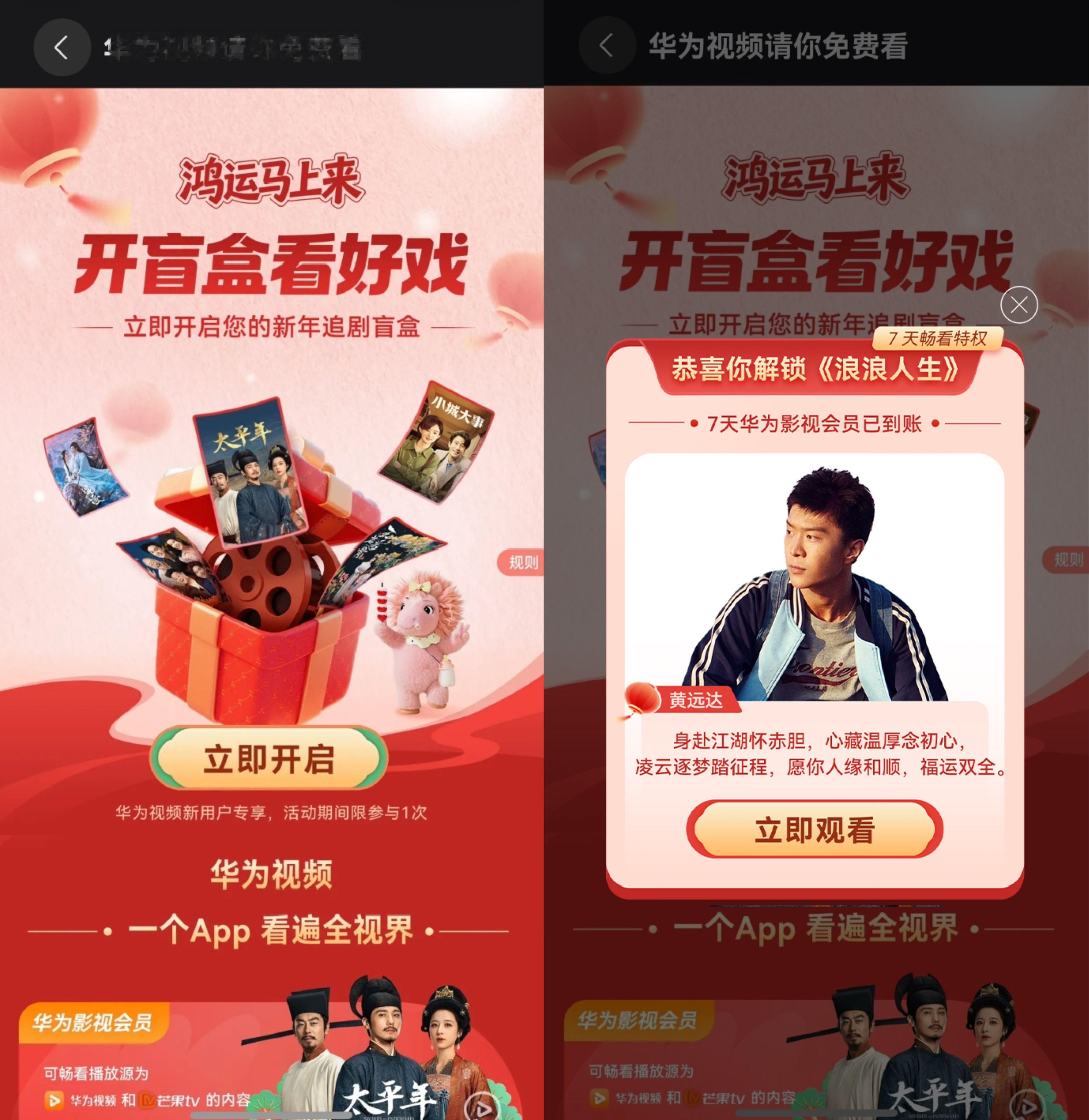 春节最幸福的其实就是节前这几天,和亲朋好友聚在一起,分享一下最近看的电视剧就很快乐。比如我最近沉迷追 成何体统 和 年少有为,见到一个亲戚就安利一波,简直不要太上头。如果你问我看这么多剧,在不同的视频平台切来切去不会很苦恼吗?我只能说,不知道,华为视频很曼妙!在华为视频一个APP里就可以看爱优腾芒四大主流平台的影剧综内容,热播剧和综艺应有尽有,想看哪个看哪个,非常全面方便,而且在AiMax影院的加持下,看剧情都觉得身临其境!哪怕不知道看什么也没关系,华为视频还上线了春节片单可以随便选择!除了央视的春晚还有河南、安徽、山东等地方春晚也能随心观看!刚好华为视频新用户福利,只要对着小艺说【马上看好戏】,就可以开盲盒领随机会员啦,快来冲这波福利吧~华为视频 追剧神器 鸿运马上来 网页链接